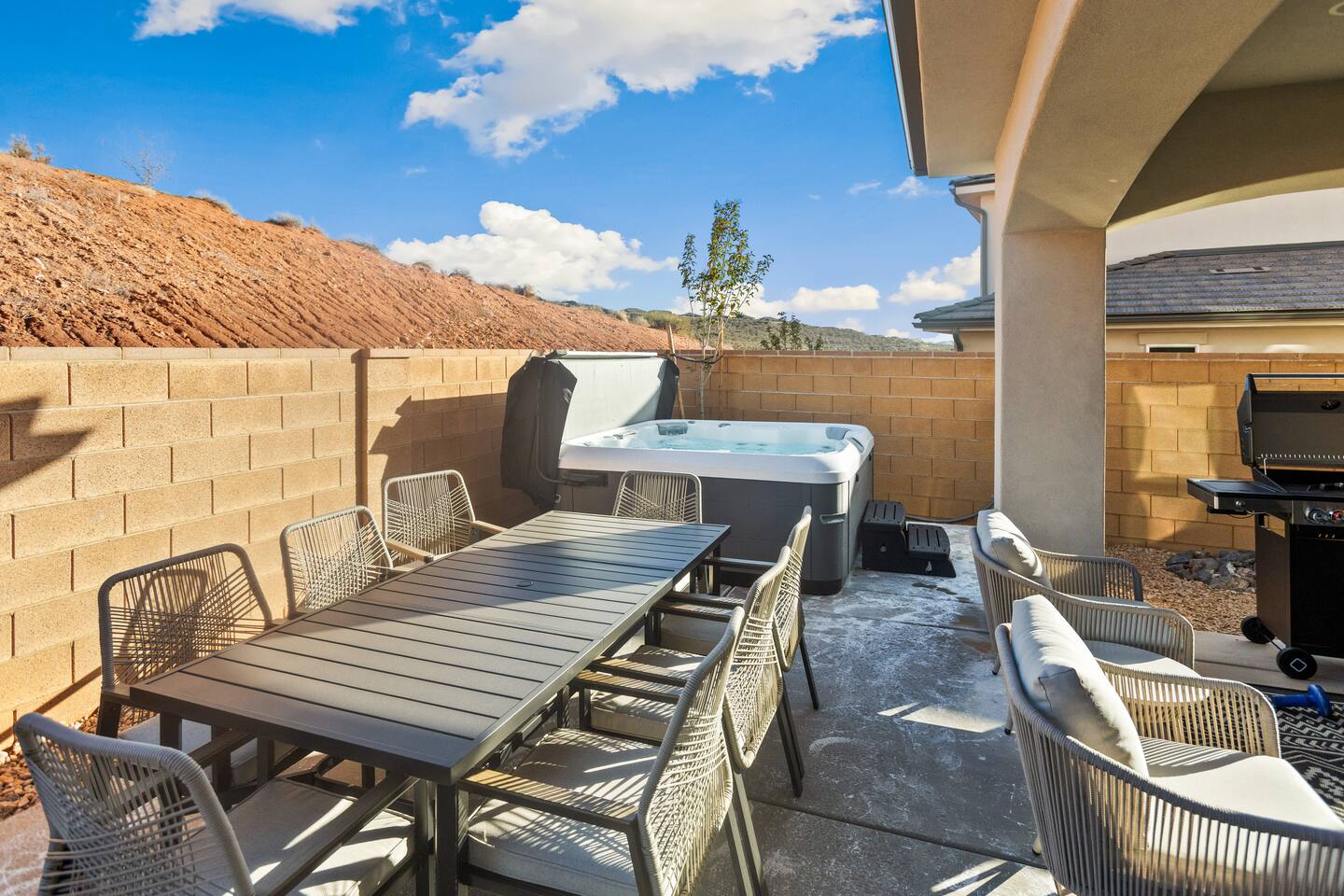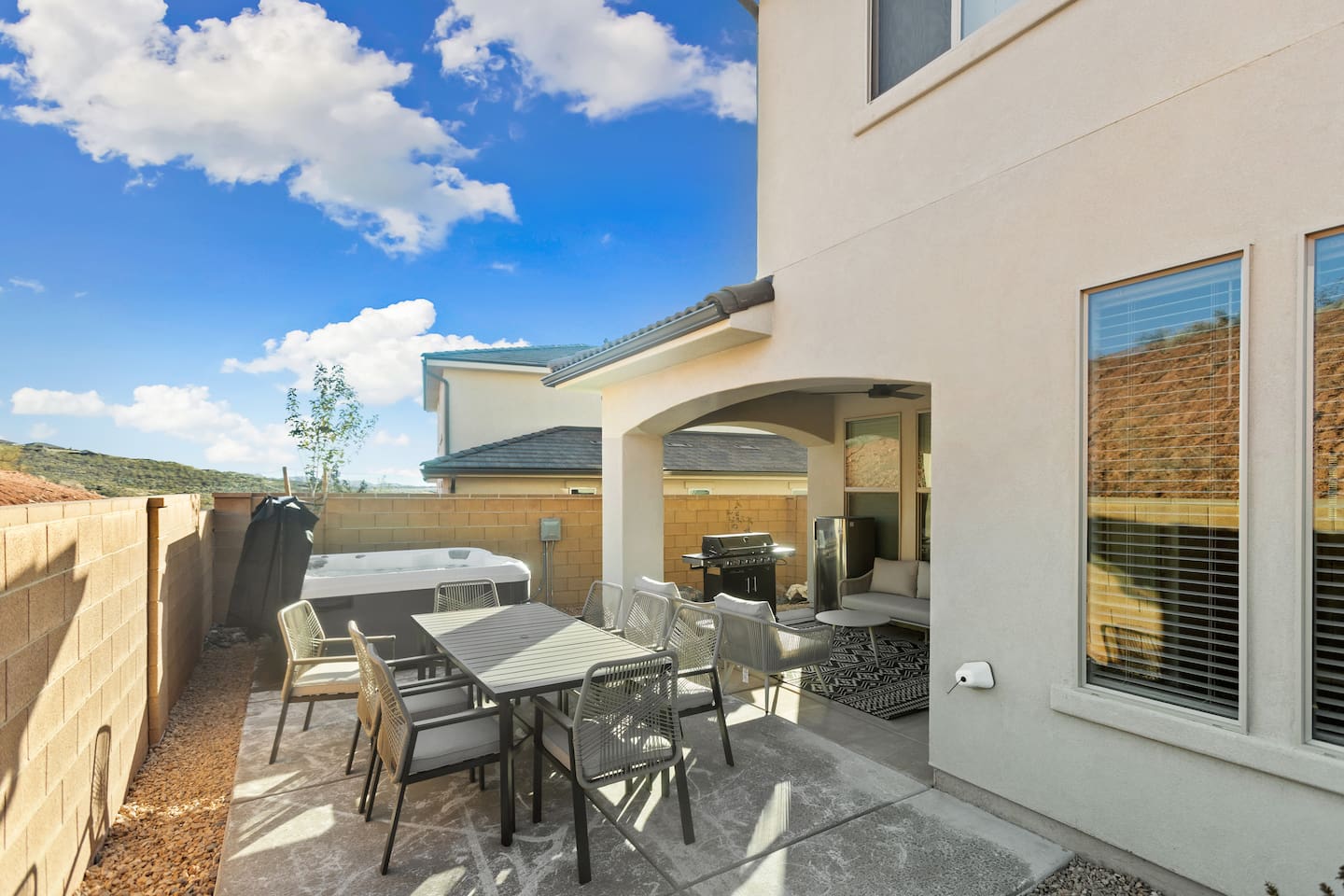 Rustico Retreat is your Southern Utah home base --> an airy, brand-new 5BR/5BA home in Washington, UT with private hot tub, covered patio with BBQ grill, outdoor dining, outdoor ping-pong, a fun game loft with air hockey, arcade games, huge TV, & tons of games & books. Minutes to Zion, Sand Hollow, golf, trails, & dining, with access to a resort-style heated pool, lazy river, super fun waterslide, splash pad, hot tubs & pickleball courts! BOOK TODAY --> Be our first guests at discounted rates!