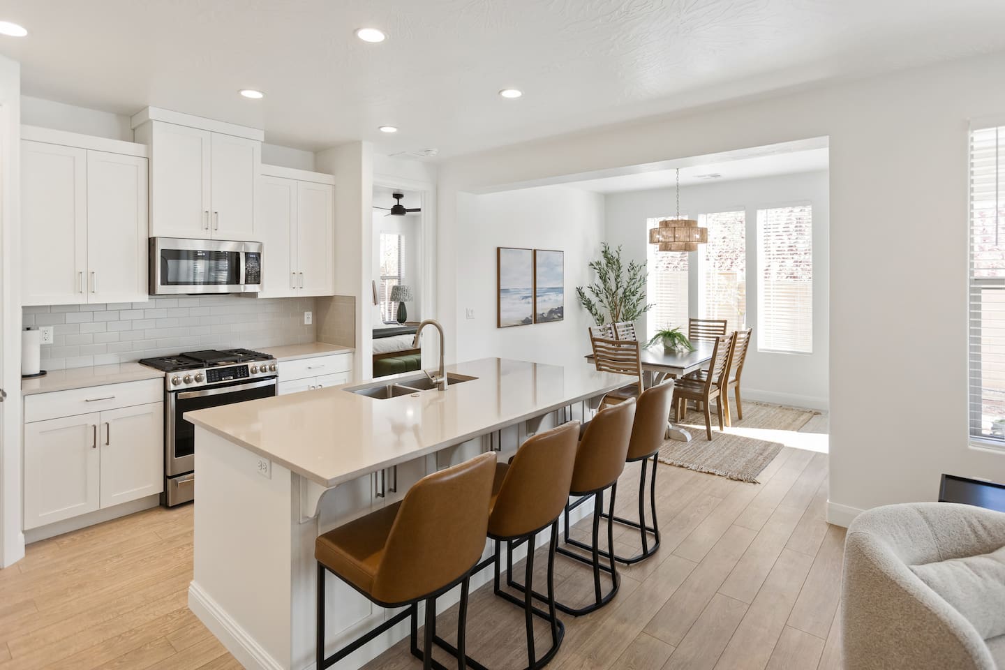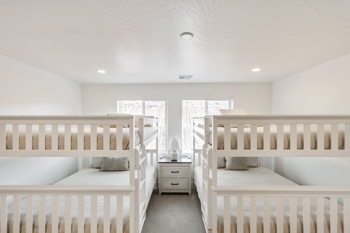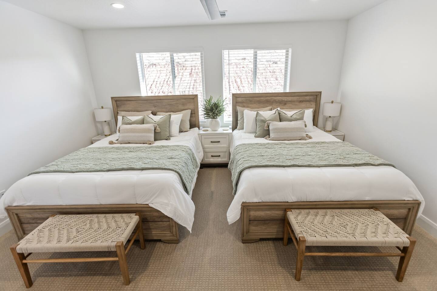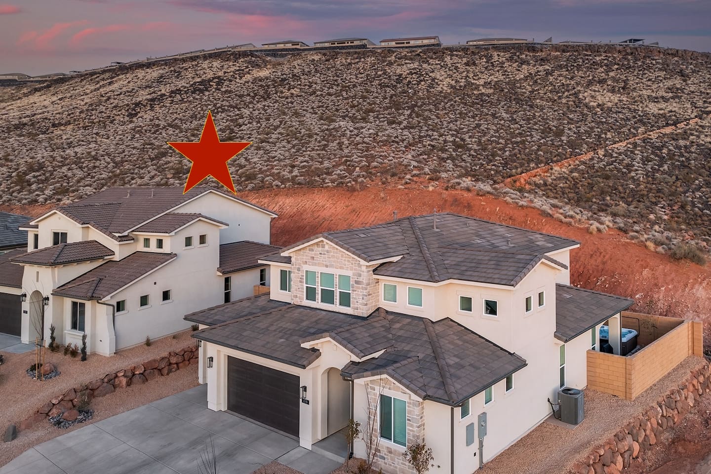 Rustico Retreat is just a few minutes from the action of downtown but in a quiet and relaxing area. Enjoy a night under the stars with your private hot tub and large outdoor dining area, no back yard neighbors is nice for that extra privacy. The covered patio with a large BBQ grill, outdoor ping-pong table and yard games allow for hours of outdoor entertainment. Inside you’ll find a basketball shoot-out arcade in the garage and a fun game loft inside with an air hockey table, arcade games, a huge TV, plus tons of games and books that will provide relaxation and entertainment for all ages. Enjoy sporting events and movies larger-than-life on either of the two massive 85” TV’s in the living room and the loft, or on any of the additional TV’s in every bedroom. With indoor dining for 12 and outdoor dining for 8, there is plenty of space to enjoy relaxing meals together. Enjoy any of the 2 king beds and 7 queen beds, all with comfortable mattresses and cozy bedding, so everyone can look forward to a good night’s sleep. 2 laundry rooms help to keep things clean, with a 2-car garage and driveway for guest parking. Enjoy access to an amazing resort-style heated pool, lazy river, waterslide, splash pad, hot tubs, and pickleball courts! This is one of the few pools in the area that is heated year-round, so you can enjoy the amenities in any season. Kids and adults alike love the waterslide and lazy river - it’s a blast! Minutes to Zion, Sand Hollow, golf trails, and dining, the location couldn’t be better. MAIN LEVEL --> • Bright open great room w/comfortable seating • Spacious kitchen w/stainless appliances • Dining table + Bar seating for meals • Bedroom 1: King bed + ensuite • Bedroom 2: Queen beds + ensuite UPSTAIRS: --> • Loft with air hockey, arcade, TV + games/books • Laundry room w/Washer + Dryer and supplies • Bedroom 3: King bed + ensuite • Bedroom 4: 2 Queen beds + ensuite • Bedroom 5: Bunk room w/4 Queen beds + ensuite SLEEPING --> • Bedroom 1: King + ensuite (main level) • Bedroom 2: Queen + ensuite (main level) • Bedroom 3: King + ensuite • Bedroom 4: 2 Queens + ensuite • Bedroom 5: Bunk room w/4 Queen beds + ensuite • Queen Air Mattress • Pack-N-Play Portable Crib * We can accommodate 1 infant in this property. If more than 1 infant, please inquire. OUTDOORS --> • Private hot tub • Covered patio with BBQ grill • Outdoor ping-pong table COMMUNITY RESORT AMENITIES --> • Heated pool • Lazy river • Waterslide • Splash pad • Hot tubs • Pickleball courts PARKING --> • 2 garage + 2 driveway • RV/Trailer parking available LOCATION --> Minutes to Zion, Sand Hollow, golf, trails, and dining—so you can explore all day and truly relax at night. WHY YOU’LL LOVE RUSTICO RETREAT--> • Private hot tub (perfect after hiking or lake days) • Covered patio with BBQ grill + outdoor seating • Outdoor ping-pong table for easy family fun • Loft: air hockey + arcade + games + books + TV • Bright open kitchen/living for gathering together • Smart TVs + fast Wi-Fi • Resort-style community amenities: heated pool, lazy river, waterslide, splash pad, hot tubs, and pickleball. BOOK TODAY --> Be our first guests at discounted rates!