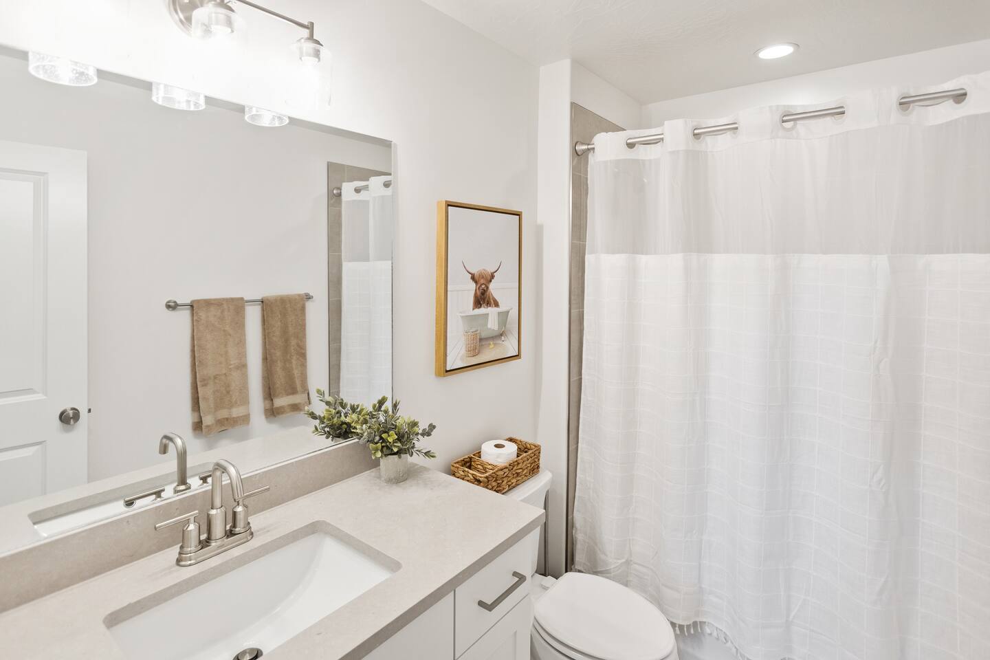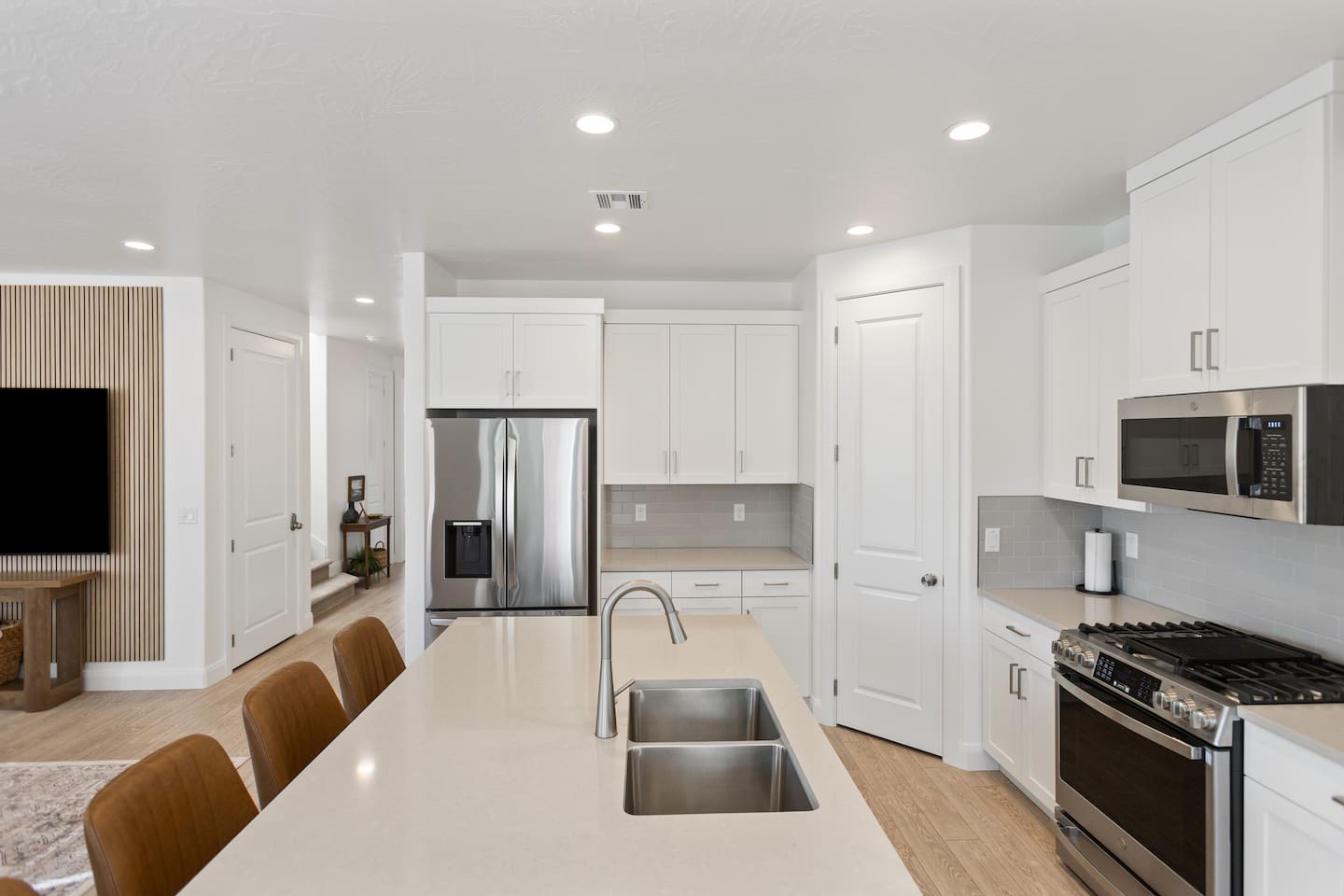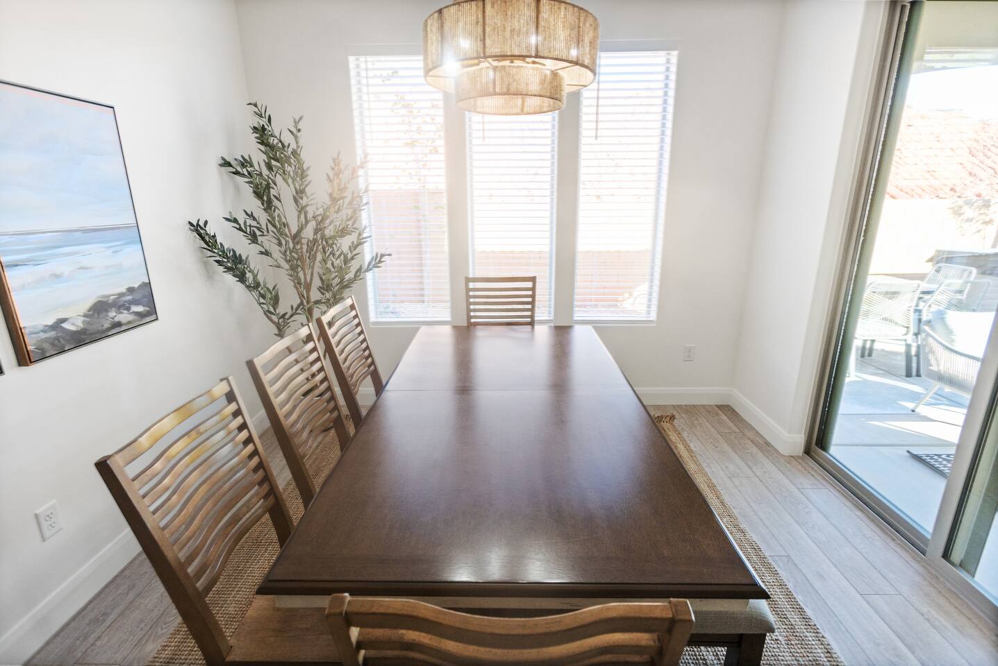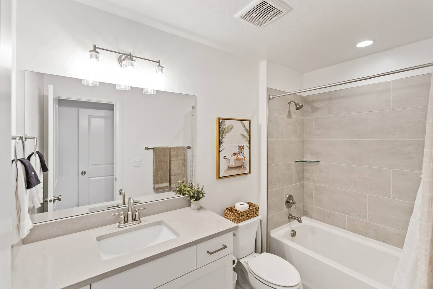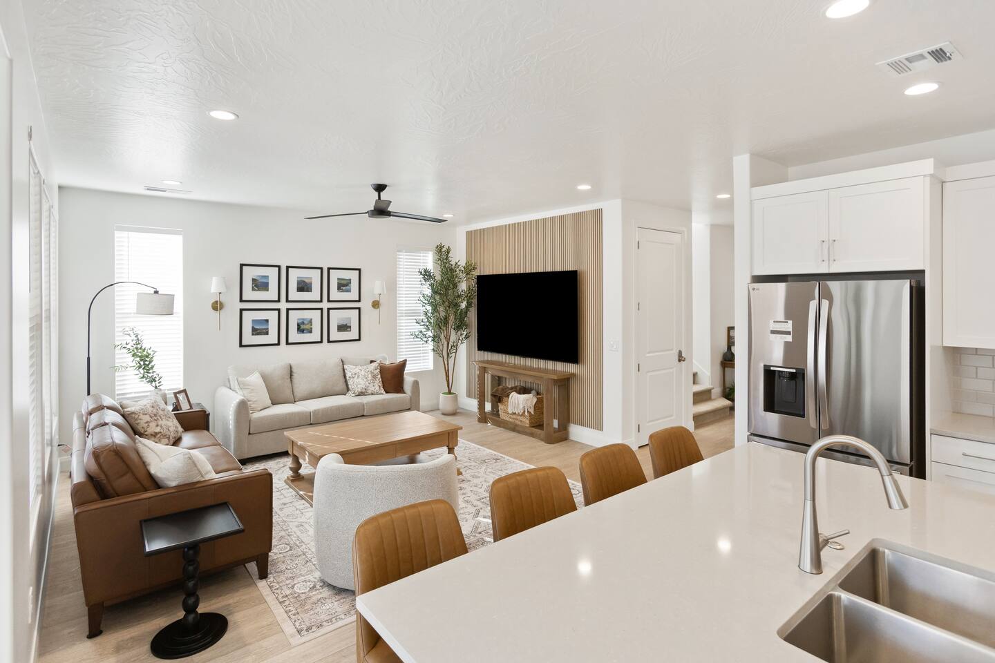 Rustico Retreat is just a few minutes from the action of downtown but in a quiet and relaxing area. Enjoy a night under the stars with your private hot tub and large outdoor dining area, no back yard neighbors is nice for that extra privacy. The covered patio with a large BBQ grill, outdoor ping-pong table and yard games allow for hours of outdoor entertainment. Inside you’ll find a basketball shoot-out arcade in the garage and a fun game loft inside with an air hockey table, arcade games, a huge TV, plus tons of games and books that will provide relaxation and entertainment for all ages. Enjoy sporting events and movies larger-than-life on either of the two massive 85” TV’s in the living room and the loft, or on any of the additional TV’s in every bedroom. With indoor dining for 12 and outdoor dining for 8, there is plenty of space to enjoy relaxing meals together. Enjoy any of the 2 king beds and 7 queen beds, all with comfortable mattresses and cozy bedding, so everyone can look forward to a good night’s sleep. 2 laundry rooms help to keep things clean, with a 2-car garage and driveway for guest parking. Enjoy access to an amazing resort-style heated pool, lazy river, waterslide, splash pad, hot tubs, and pickleball courts! This is one of the few pools in the area that is heated year-round, so you can enjoy the amenities in any season. Kids and adults alike love the waterslide and lazy river - it’s a blast! Minutes to Zion, Sand Hollow, golf trails, and dining, the location couldn’t be better. MAIN LEVEL --> • Bright open great room w/comfortable seating • Spacious kitchen w/stainless appliances • Dining table + Bar seating for meals • Bedroom 1: King bed + ensuite • Bedroom 2: Queen beds + ensuite UPSTAIRS: --> • Loft with air hockey, arcade, TV + games/books • Laundry room w/Washer + Dryer and supplies • Bedroom 3: King bed + ensuite • Bedroom 4: 2 Queen beds + ensuite • Bedroom 5: Bunk room w/4 Queen beds + ensuite SLEEPING --> • Bedroom 1: King + ensuite (main level) • Bedroom 2: Queen + ensuite (main level) • Bedroom 3: King + ensuite • Bedroom 4: 2 Queens + ensuite • Bedroom 5: Bunk room w/4 Queen beds + ensuite • Queen Air Mattress • Pack-N-Play Portable Crib * We can accommodate 1 infant in this property. If more than 1 infant, please inquire. OUTDOORS --> • Private hot tub • Covered patio with BBQ grill • Outdoor ping-pong table COMMUNITY RESORT AMENITIES --> • Heated pool • Lazy river • Waterslide • Splash pad • Hot tubs • Pickleball courts PARKING --> • 2 garage + 2 driveway • RV/Trailer parking available LOCATION --> Minutes to Zion, Sand Hollow, golf, trails, and dining—so you can explore all day and truly relax at night. WHY YOU’LL LOVE RUSTICO RETREAT--> • Private hot tub (perfect after hiking or lake days) • Covered patio with BBQ grill + outdoor seating • Outdoor ping-pong table for easy family fun • Loft: air hockey + arcade + games + books + TV • Bright open kitchen/living for gathering together • Smart TVs + fast Wi-Fi • Resort-style community amenities: heated pool, lazy river, waterslide, splash pad, hot tubs, and pickleball. BOOK TODAY --> Be our first guests at discounted rates!