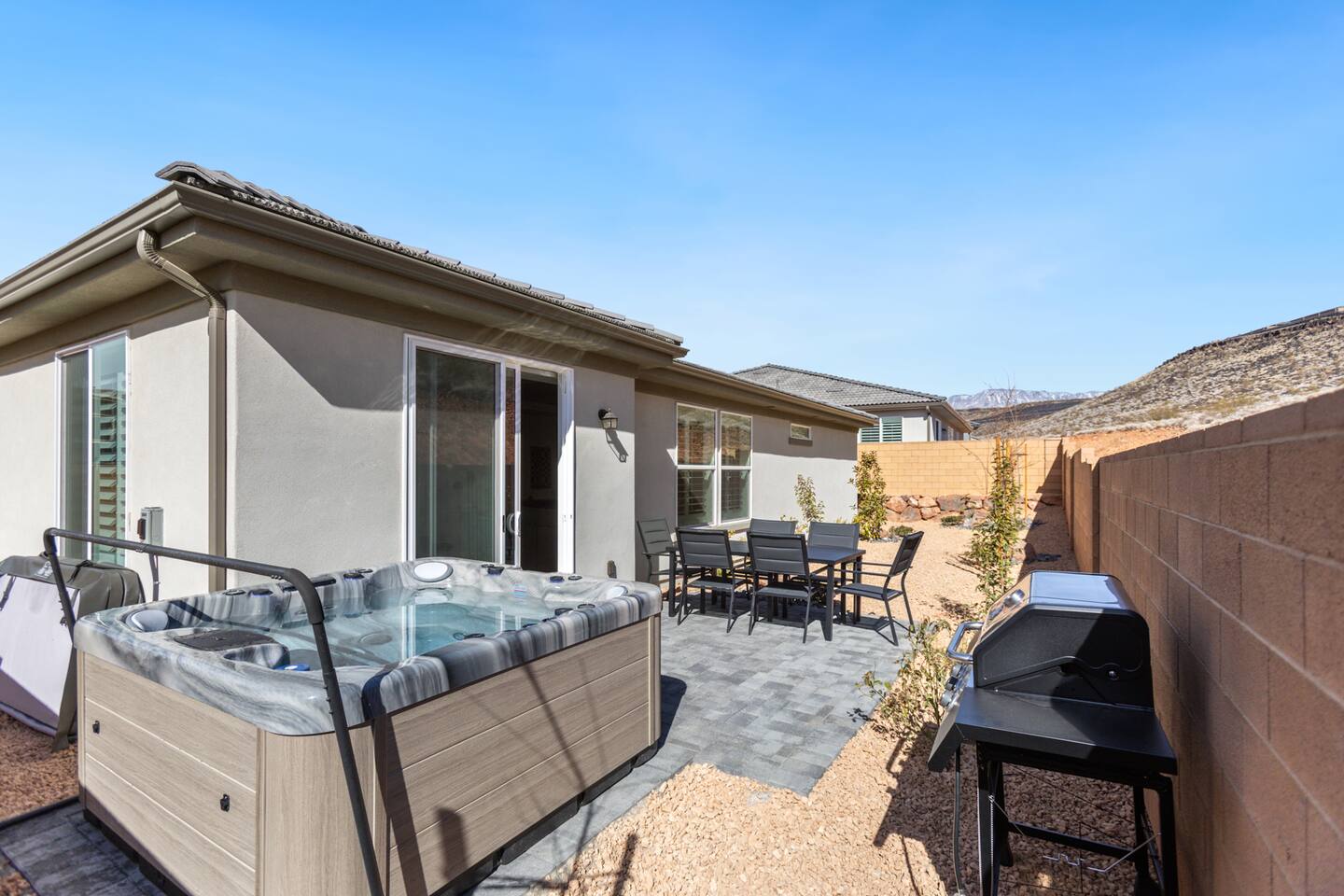 Welcome to Your Ultimate Home Base for Exploring Southern Utah! This brand-new home is the perfect blend of luxury and comfort, offering the ideal retreat for families and groups looking to explore all that Southern Utah has to offer. Whether you're adventuring in Zion National Park, soaking up the sun at nearby St. George, or enjoying the relaxing resort-style amenities, this is your gateway to an unforgettable stay. Property Highlights: Bedrooms & Bathrooms: - 3 spacious bedrooms with comfortable bedding to ensure a restful night. - 3.5 modern bathrooms, featuring plenty of space and high-end finishes. - A king master suite and two beautifully appointed guest rooms to accommodate all your group’s needs. Full Kitchen: - Gorgeous, well-equipped kitchen with all the tools you need to prepare meals. - High-end appliances including stove, oven, microwave, refrigerator, and dishwasher. - Coffee maker, toaster, blender, and all essential cookware for your convenience. Entertainment & Technology: - Fast, high-speed WiFi for streaming, remote work, or keeping in touch with loved ones. - Smart TVs in every bedroom and the living room with access to your favorite streaming apps (Netflix, Hulu, etc.). - Optional game console or board games to entertain the family (please confirm details). Outdoor Living & Resort-Style Amenities: Private Patio: Enjoy the fresh air and beautiful surroundings from your private outdoor seating area. Community Pool & Hot Tub: Take a dip in the sparkling pool, unwind in the hot tub, or let the kids enjoy the splash pad and water slide! Pickleball Courts & Walking/Bike Paths: Stay active and enjoy the scenic beauty of the area with access to pickleball courts, bike trails, and walking paths. Private BBQ Grill for al fresco dining and evening cookouts. Convenient Location: - Just minutes from Zion National Park – explore the stunning landscapes of one of the most famous national parks in the country. - Only a short drive from St. George, offering shopping, dining, and entertainment. - Easy access to nearby restaurants, grocery stores, and more. - Ideal location for hiking, biking, and outdoor adventure. Why You’ll Love It: Family-Friendly Fun: The neighborhood offers something for everyone! Whether it's lounging by the pool, enjoying a pickleball match, or relaxing in the hot tub, you'll find ample opportunities for fun and relaxation. Comfort & Privacy: Our property is a private, stand-alone home with no shared walls, providing peace and privacy while still offering easy access to the neighborhood’s amenities. Fast WiFi & Smart Technology: Stay connected and entertained during your stay with high-speed WiFi and smart TVs throughout the property. Spacious & Thoughtful Design: Open floor plan, high ceilings, and modern touches create a welcoming atmosphere for families, groups, or couples. Resort-Style Community Amenities: Large Pool with Slide & Splash Pad: Perfect for family fun or relaxing under the Southern Utah sun. Hot Tubs & Pickleball Courts: Enjoy multiple hot tubs for relaxation and stay active with the pickleball courts. Walking & Biking Paths: Explore the scenic views and get some exercise along the community’s beautiful trails. Minutes from Zion National Park: An adventurer’s dream, with easy access to world-class hiking, canyons, and breathtaking vistas. Book Your Stay: Our home isn’t just a place to stay – it’s a place to make lasting memories. Whether you’re exploring the national park, unwinding in the pool, or simply soaking in the views, you’ll love every moment of your stay. Book now to take advantage of discounted pricing and start your unforgettable adventure in Southern Utah!