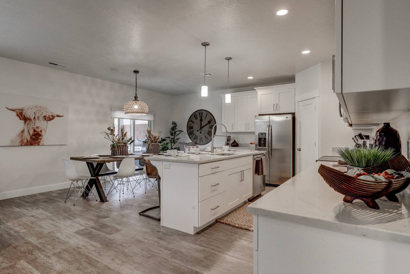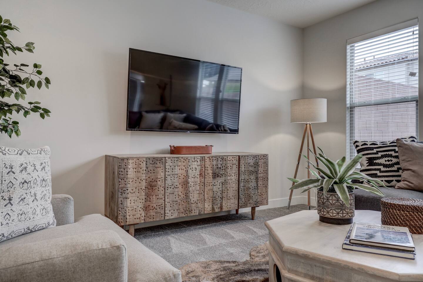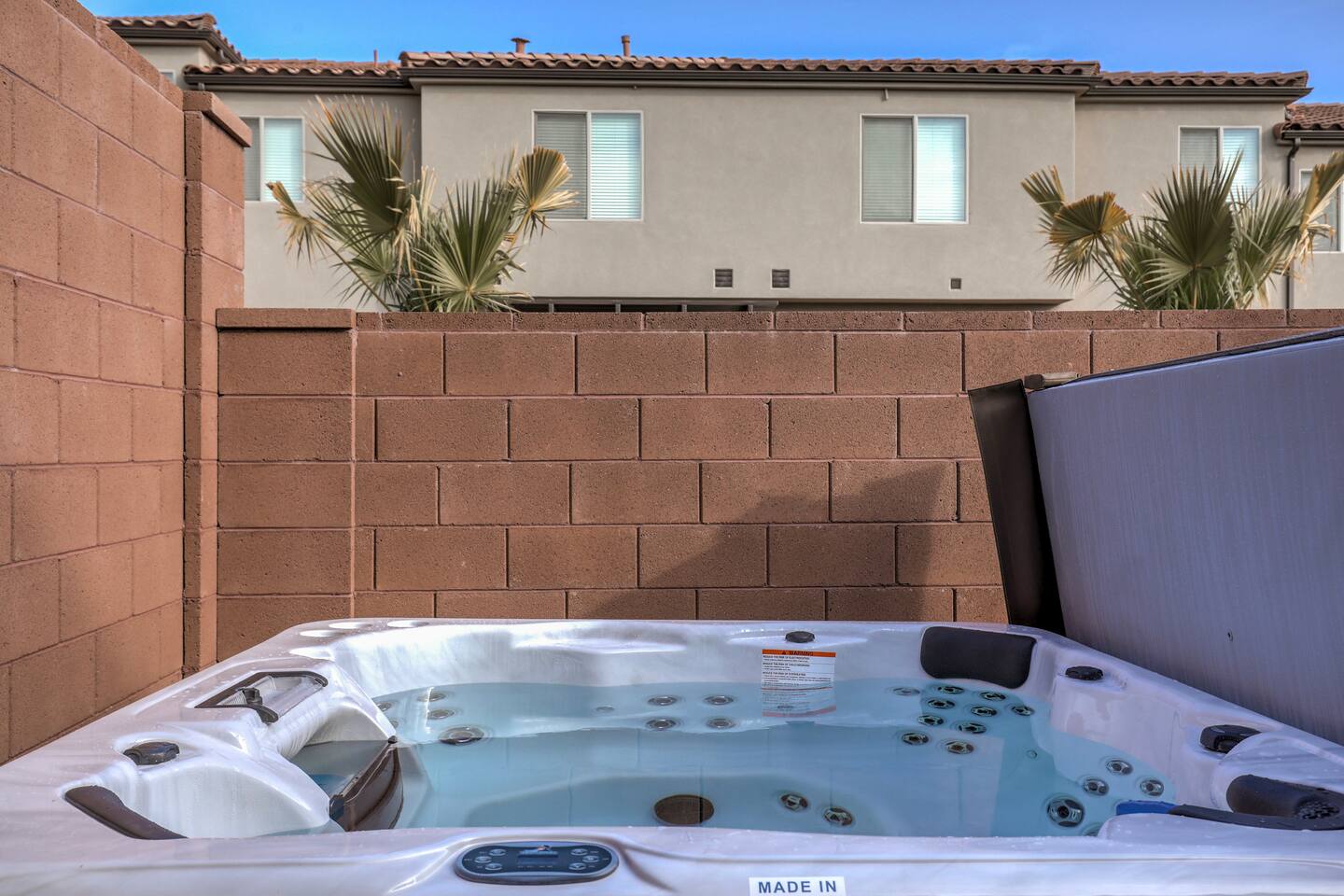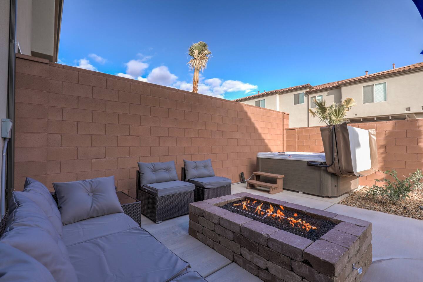 Beautiful home with trendy decor and an open and comfortable layout is optimal for large groups. With two Master Suites, two living areas, four bathrooms and a spacious kitchen, this home is perfect for two families! Backyard includes private hot tub, fire pit, BBQ grill, outdoor dining table with additional outdoor seating allows for true relaxation. Centrally located to Zion National park, championship style golf, amazing hiking, and beautiful St. George, Utah.
