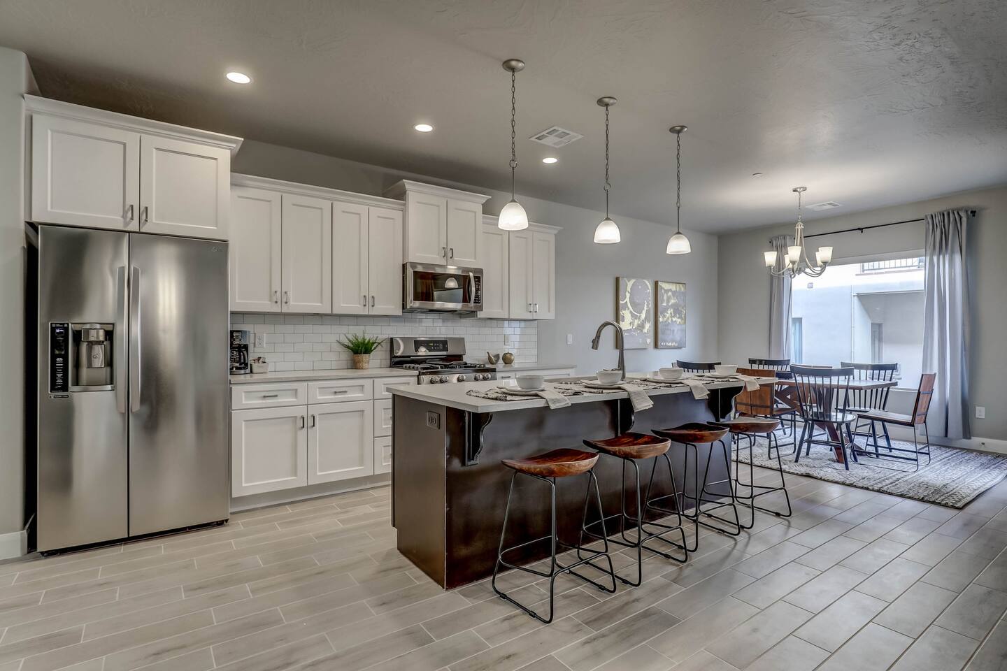 Sleek and spacious, this brand new home has everything you need for comfort and relaxation. Spend sunny days exploring nearby State Parks under 10 miles out or Zion National Park only 25 minutes away! As our guest, you have full access to the abundant amenities of Zion Village Resort—Large resort swimming pool, hot tub, lazy river, lounge areas, kids splash pad & slide, clubhouse w/ fitness center, pool table, BBQ grilling area & fire pits. Perfect location for popular Southern Utah excursions!