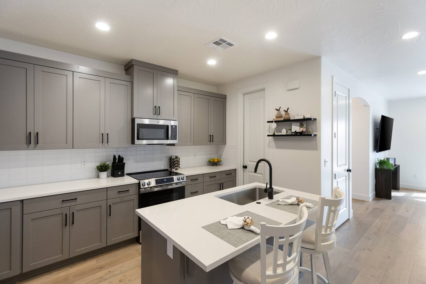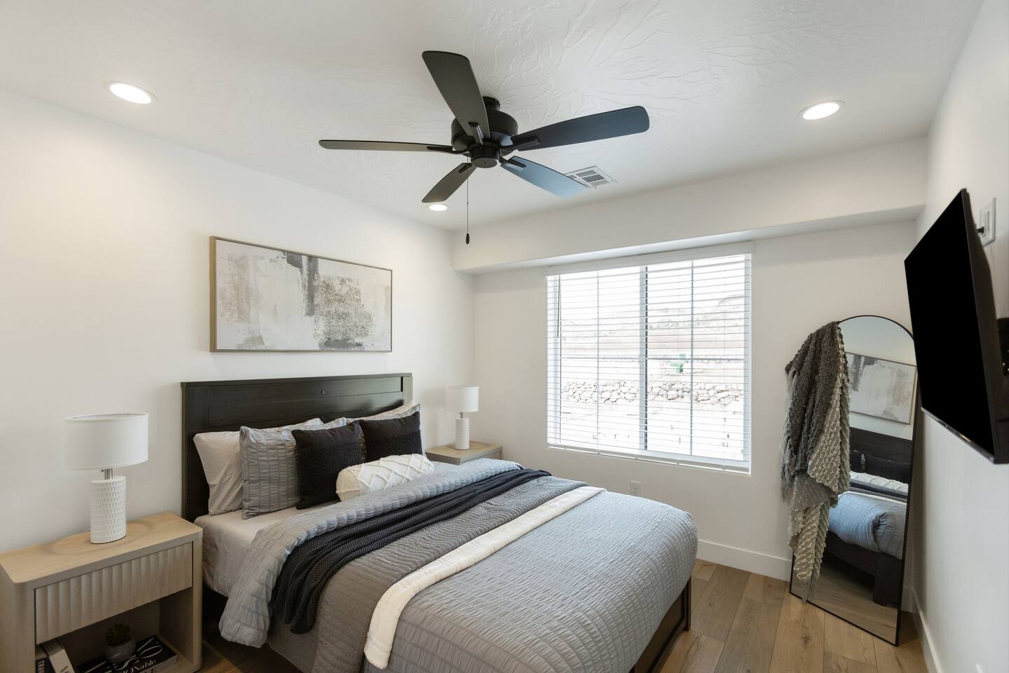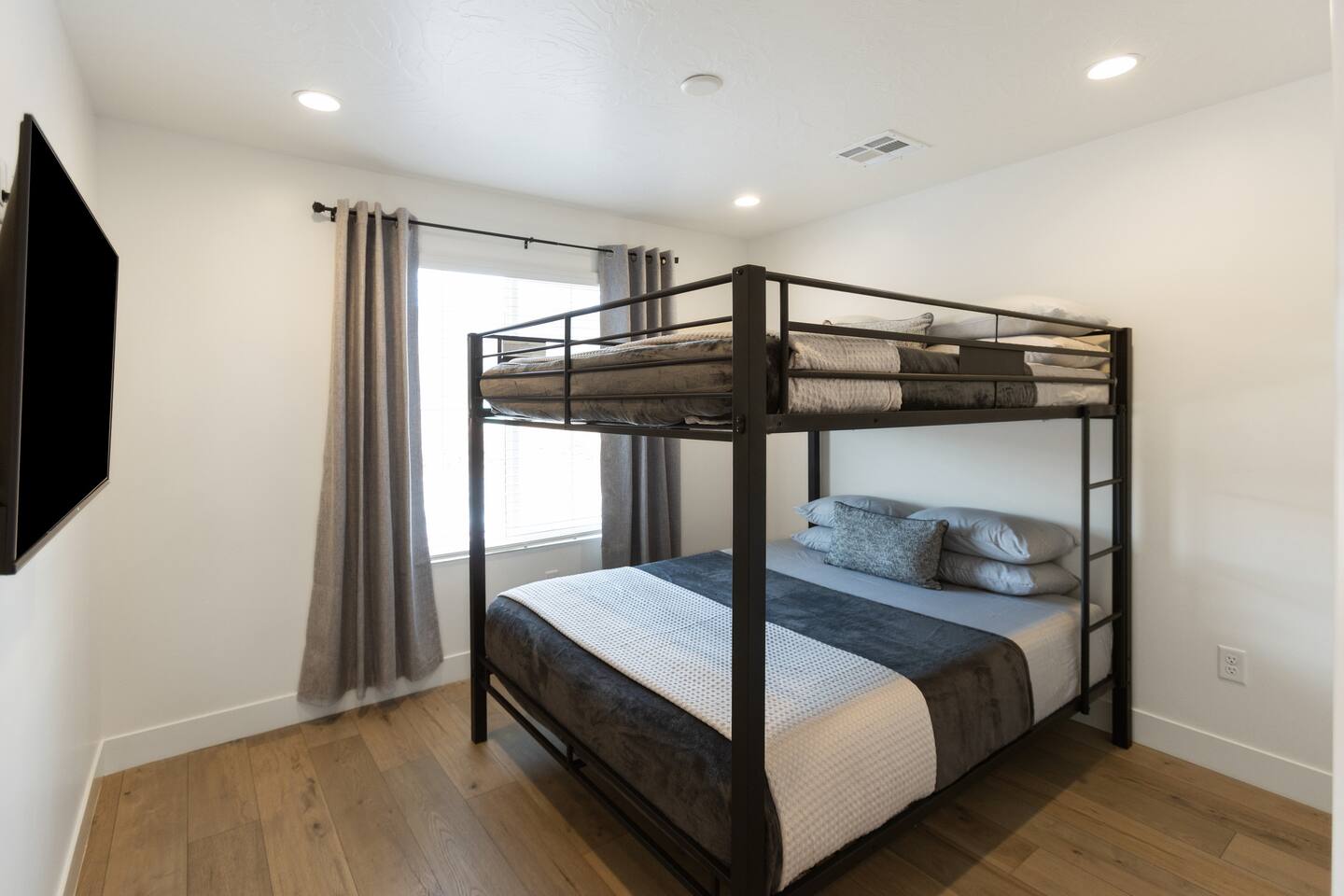 🛏️ Accommodations: 1️⃣ Bedroom: King Bed w/ En suite Bathroom (Sleeps 2) 2️⃣ Bedroom: Queen Bed (Sleeps 2) 3️⃣ Bedroom: Queen Bunk Bed x 2 (Sleeps 4) + Additional: Queen Air Mattress (Sleeps 2) Pack N Play Portable Crib (We can accommodate 1 infant in this property. If more than 1 infant, please inquire.) 📶 Fast WiFi Internet 📺 Smart TVs in all rooms 🚘 Garage w/EV charger 🛏️ Premium Mattresses with Luxury Bedding 🧺 Washer/Dryer w/Laundry Supplies 🍽️ Fully Stocked Kitchen w/New Appliances 🐶 Dog Friendly* 🌄 Courtyard w/Outdoor furniture 🔥 Fire Pit + BBQ Grill w/Propane 💦 Heated Pool All Year (10am - 10pm) 🏓 Pickle Ball Courts (6am - 10pm) 🚘 Parking: The home has a 2-car garage with Level 2 charger for your EV (Don't forget your cord!) There is plenty of parking within the community for Trailers and RVs. 🍽️ Stocked Kitchen Includes: Coffee Maker/Keurig Blender Crockpot Griddle Dishes Glasses Coffee Cups Wine Glasses Kid Dish Set Silverware Knife Set Mixing Bowls Serving Dish and Platter Tupperware Pots & Pans Pyrex Dishes Colander Cookie Sheet Cake Pan Measuring Cups and Spoons Mixing Spoons Whisks and Spatulas Large Serving Spoons Vegetable Peeler Pizza Cutter Ice Cream Scoop Can/Wine Opener Outdoor Utensils for BBQ Grill and MORE!!!! This new home is the perfect rental for your Southern Utah vacation! Even though you'd never want to leave our comfortable professionally designed home, this home is just moments to the fun of Sand Hollow Reservoir and golf course! From the fully stocked kitchen to the bbq on the patio, this spacious home will make you not want to leave! * Home is dog friendly and we do not charge a pet fee for one small dog. If you have more than 1 dog or if your dog is larger than 17 pounds - please inquire. We have made exceptions and absolutely willing to consider - pet fee may apply for larger/additional dogs. Please send us a message. We are happy to help!