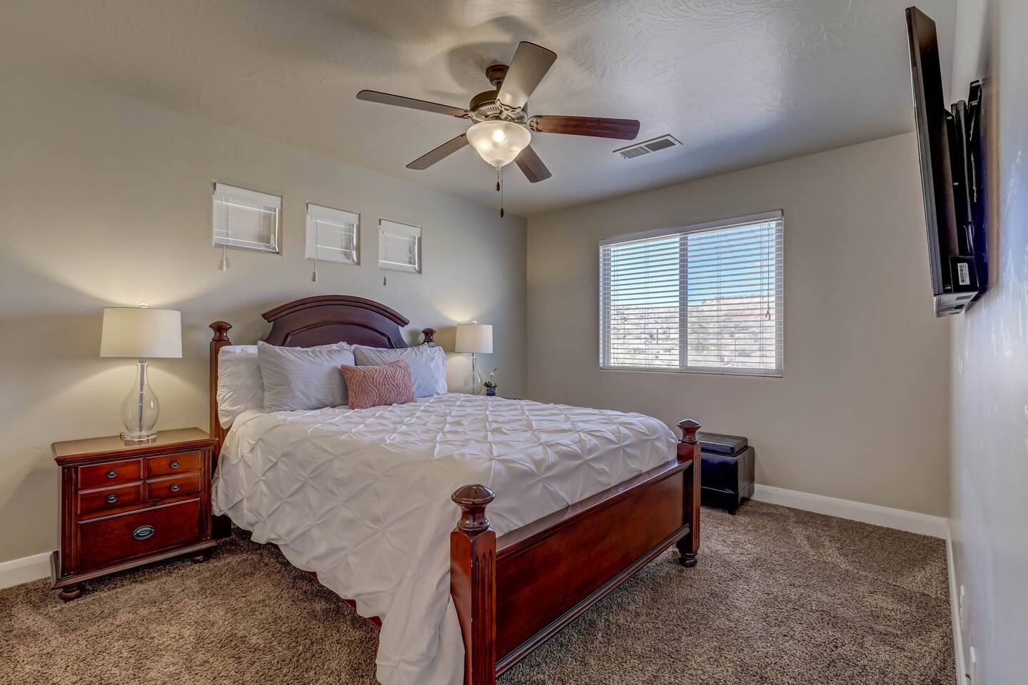 Adventure seekers and desert dwellers will find all the vacation essentials perfect for enjoying Utah’s beauty with large groups, extended families, and friends! • 3 Bed/3.5 Bath home with Garage • Heated Community Pool • HighSpeed WiFi • Central A/C • Dog Friendly* • Fully equipped with everything you will need. Sleeps up to 10 • Bedroom 1: King size bed • Bedroom 2: King size bed • Bedroom 3: Bunkbeds: 1 Queen + 3 Single • PackNPlay Portable Crib (We can accommodate 1 infant in this home. If more than 1 infant, please inquire.) With many beds, this home is very spacious to sleep large families and groups. A full kitchen with cooking essentials makes it perfect for cooking meals at home. The community pool and hot tub make it a perfect place to cool off or relax after a long day. Enjoy the fitness room and also the clubhouse for extra room for large gatherings. The location near Zion National Park and Sand Hollow Reservoir will provide your group with the perfect mix of adventure and relaxation. Enjoy relaxing by the pool while children have a great way to cool off and enjoy the sunshine. There is a small park and grass area for your group to utilize during your stay. --> Coral Ridge was not designed for RV/Trailer/ATV parking and may only be parked and/or stored within the community if they fit in garage or driveway without overhanging into the street. Coral Canyon Resort Amenities Include: • Heated Community Pool Open All Year • Hot Tubs • Golf Course w/Discounts • Fishing Pond • Park w/Playground • Putting Green • Ping Pong Table • Foosball Table • Clubhouse w/Fitness Area • Trails throughout Community This home is perfect for families to relax and enjoy time together. No matter how you spend your vacation, you will feel right at home. * Home is dog friendly and we do not charge a pet fee for one small dog. If you have more than 1 dog or if your dog is larger than 17 pounds - please inquire. We have made exceptions and absolutely willing to consider - pet fee may apply for larger/additional dogs. Please send us a message. We are happy to help!