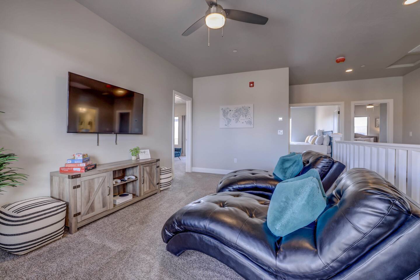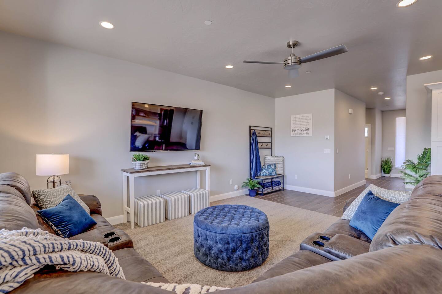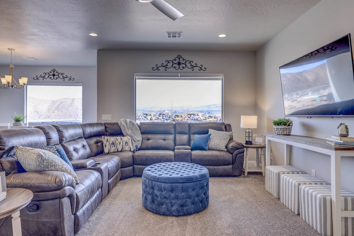 Perfect home for large family and groups close to Zion and Sand Hollow with Private Hot Tub, Xbox and Ping Pong Table. Resort Pool w/lazy river *HEATED & OPEN ALL YEAR* Our 5bed+5bath professionally designed home boasts master ensuites plus a bunk room, accommodating 18 guests comfortably with multiple large gathering areas. Less than 8 miles from Sand Hollow, only 23 miles from Zion, and has amenities that will tempt you to just stay and enjoy the resort. This NEW home really does have it all!