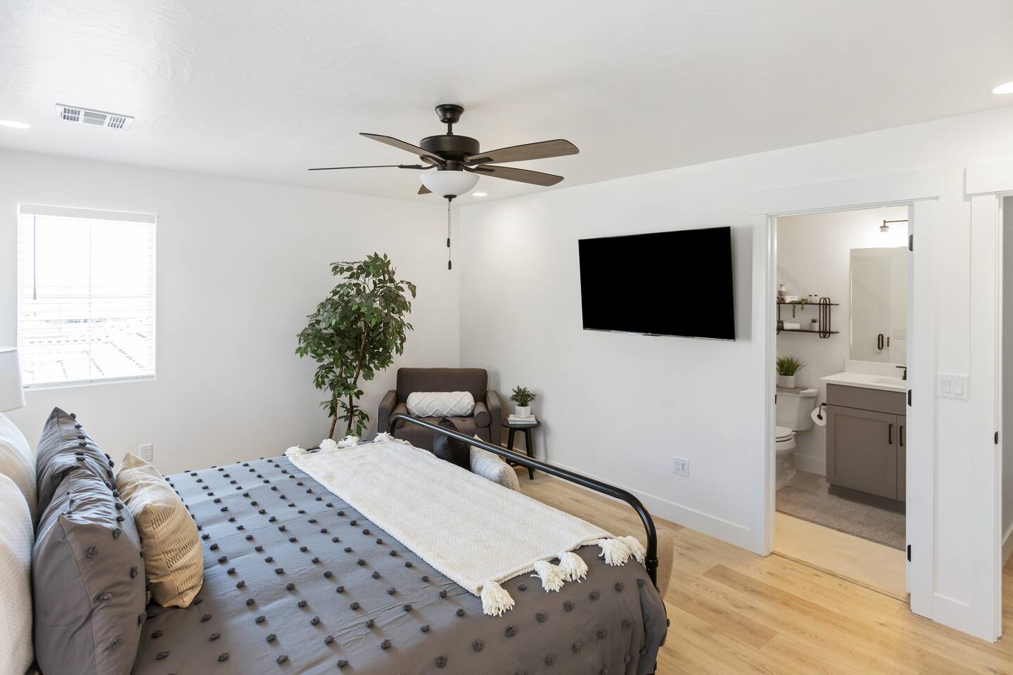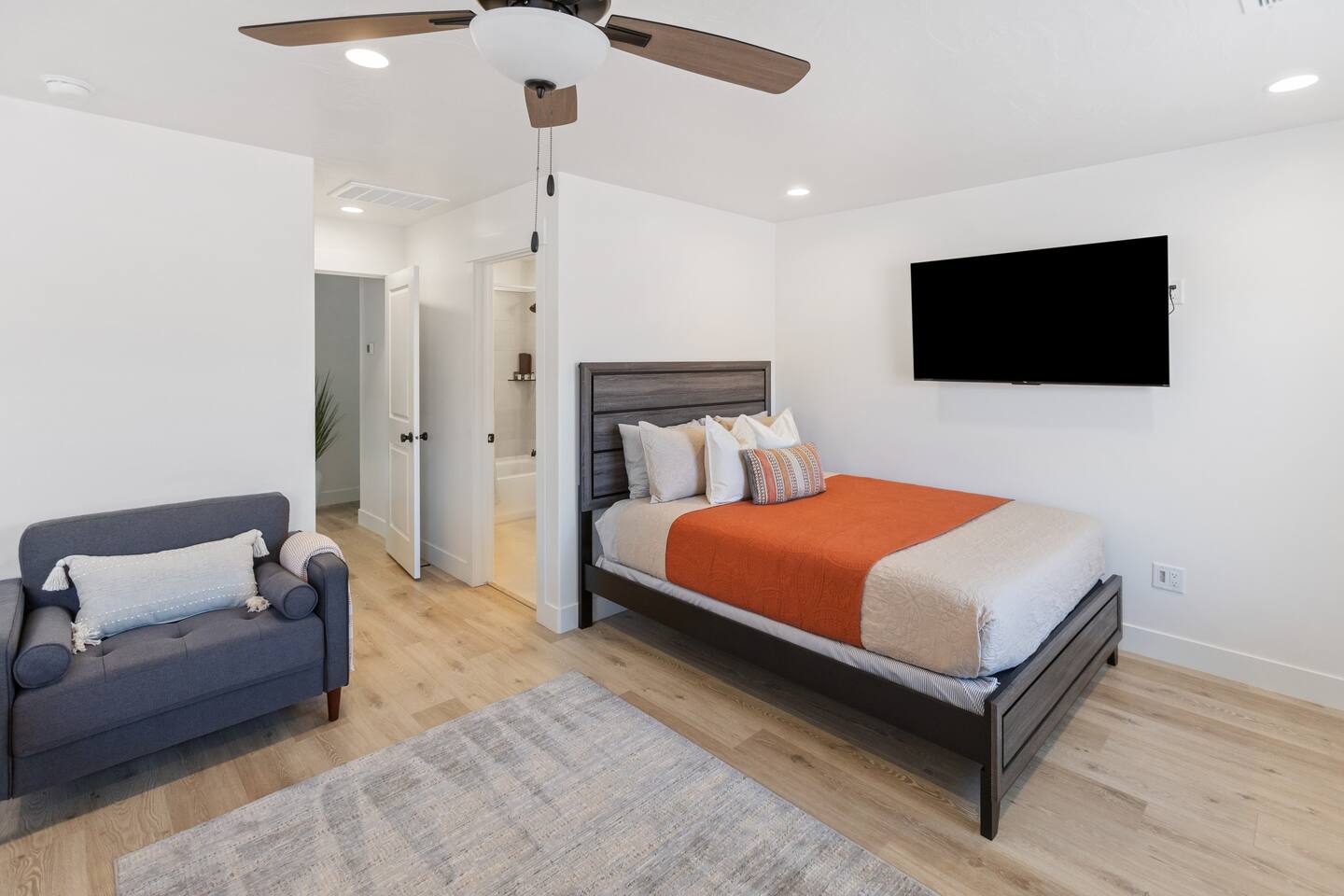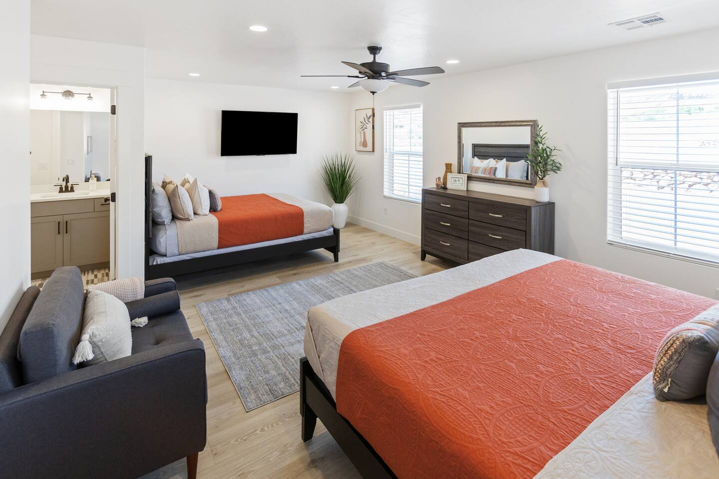 π½οΈ Fully Equipped Kitchen β island seating, dining table, and coffee maker (keurig and drip coffee maker) π¦ Heated Pool + Hot Tub available πΆ Dog Friendly* No pet fee! π 2-Car Garage β EV charger and full size ping pong table for some friendly competition π Outdoor Space β Fire up the BBQ grill on the back patio or gather around and enjoy the views π Spacious & Cozy Sleeping Arrangements: β Primary Suite β King bed, private bathroom with walk-in shower, and ample closet space β Ensuite Room β King bed, desk, private bathroom, and a huge walk-in closet β Bunk Room β King + Queen beds, private bathroom with tub/shower combo π½ Bathrooms stocked with essentials β Shampoo, conditioner, soap, and hair dryers provided πΊ Entertainment & Connectivity: β Smart TVs in every room (4 total) β All with built-in Roku for your favorite streaming apps β High Speed WiFi π Prime Location β Adventure Awaits! β 5 minutes to downtown St. George β Less than 30 miles from Zion National Park β Near Quail Creek & Sand Hollow Reservoir β Ideal for boating & outdoor fun β Close to many top-rated golf courses β Minutes from Tuacahn Amphitheater β Enjoy concerts & live performances * Home is dog friendly and we do not charge a pet fee for one small dog. If you have more than 1 dog or if your dog is larger than 17 pounds - please inquire. We have made exceptions and absolutely willing to consider - pet fee may apply for larger/additional dogs. Please send us a message. We are happy to help! Whether you're here to hike, golf, explore, or unwind, this home is the perfect base for your next adventure. Book your stay today & SAVE!