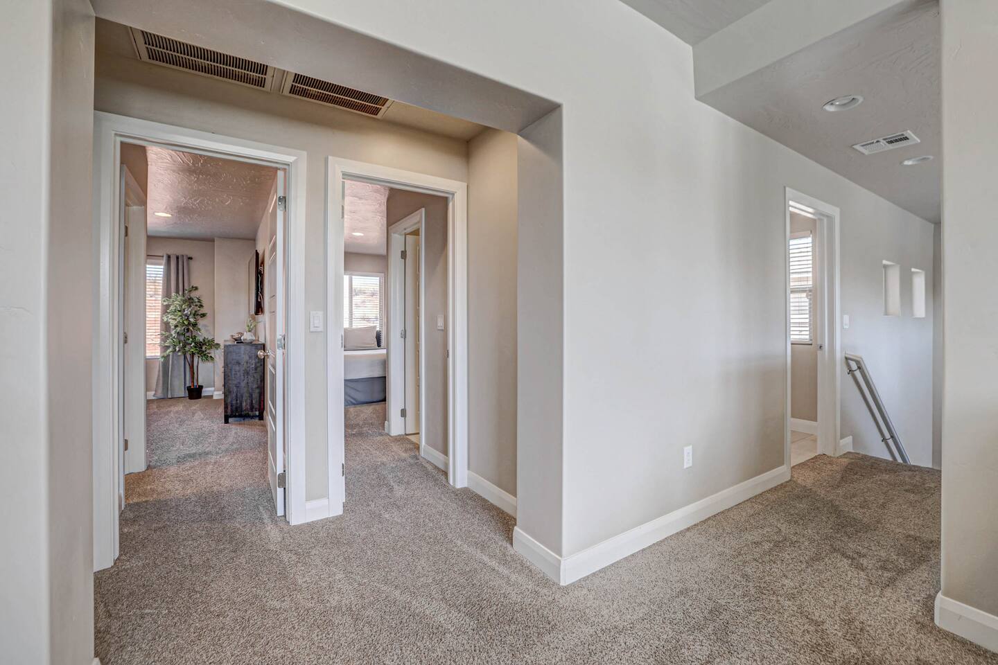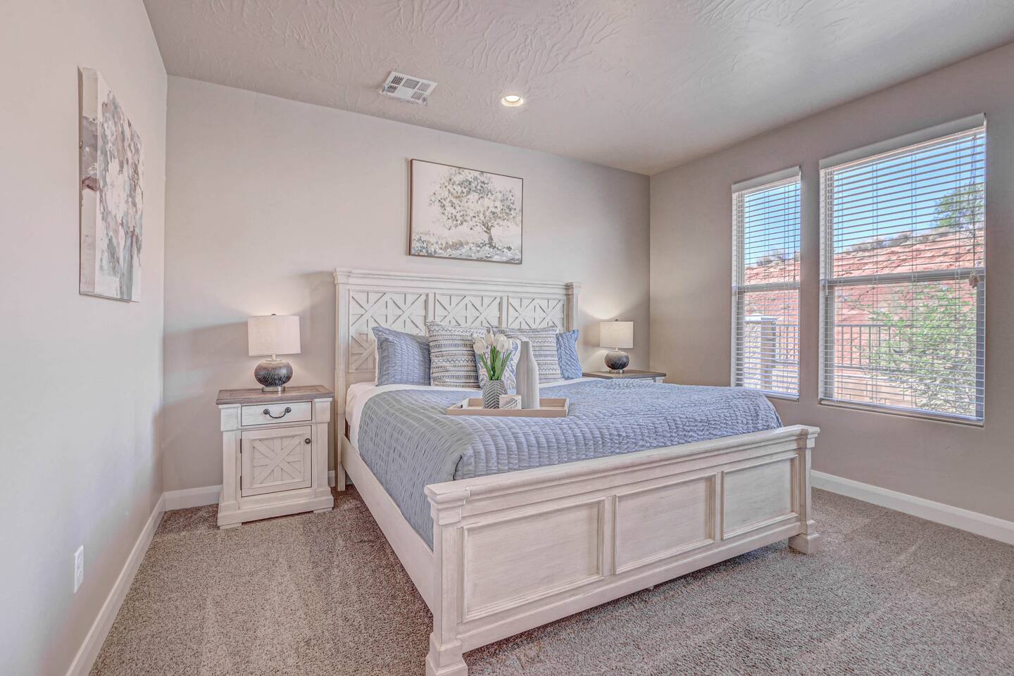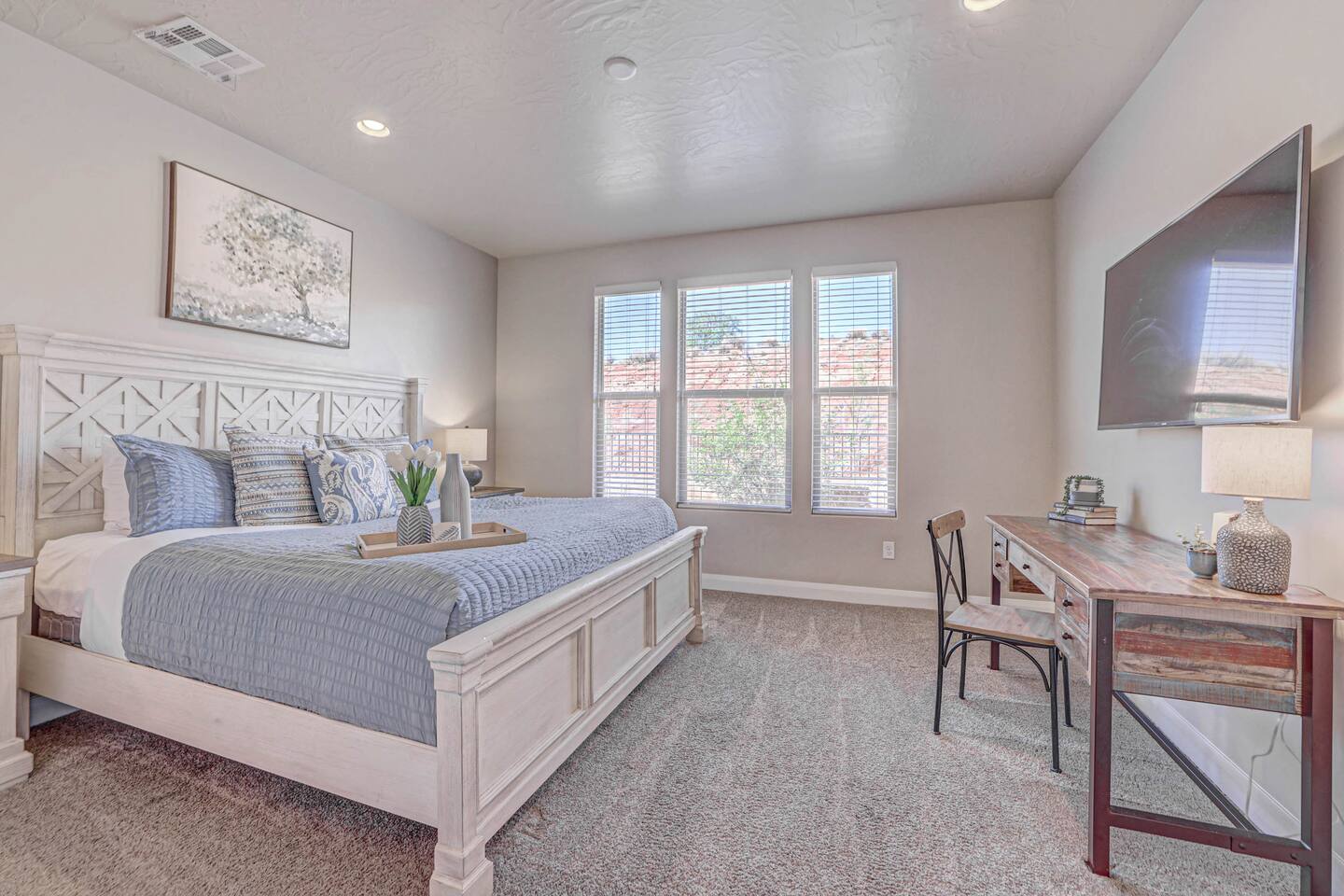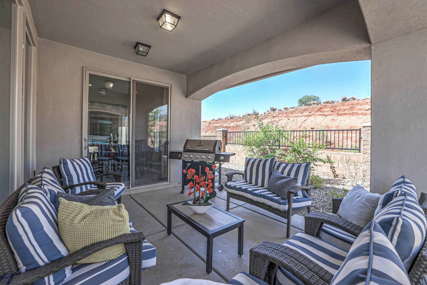 Our home is spotless, modern with superior furnishings throughout making this the perfect home for families and large groups for your upcoming getaway to Southern Utah. Our goal is to exceed your vacation experience in every way and cleanliness is our top priority. To make it easy, we provide you with detailed PreStay information to help plan your trip, keyless entry with Self Check-In and offer personal assistance at any time. We are available 24/7 so do not hesitate to reach out with any questions - We are always happy to help! * SLEEPING ACCOMMODATIONS * Master 1: King (sleeps 2) Main level Master 2: Queen (sleeps 2) Main level Master 3: King (sleeps 2) Upstairs Bedroom 4: Queen x 2 (sleeps 4) Upstairs Other: Queen Inflatable Air Mattress (sleeps 2) Full Mattress Bean Bag Convertible x 3 (sleeps 3) Pack N Play Crib (sleeps 1 infant) * We can accommodate 1 infant in this property. If more than 1 infant, please inquire. Total Sleeping Capacity: 16 Total Beds: 5 + 3 additional options * 4 FULL BATHROOMS * Two bathrooms on main level and 2 additional full bathrooms upstairs We provide Shampoo, Conditioner, Soap, Hair dryer, and Towels (Pool Towels too!) * FEATURES * Fast WiFi Ping Pong Table Foosball Table xBox w/Unlimited Gaming Subscription 5 Roku TVs, DVD player + Movies, Board games, Cards and Books! Fully Stocked Kitchen w/New Appliances 2 Desks in quiet areas for Work/School Washer + Dryer BBQ Grill w/Propane Covered Patio w/comfortable seating w/beautiful views Oversized 2 Car Garage Free RV/Trailer Parking Walking paths and Park Community Heated Swimming Pool + Hot Tub * PARKING * Oversized Garage (2 vehicles) Driveway (2 vehicles) Free additional parking throughout community for RV/Trailers on a first come - first serve basis * FULLY STOCKED KITCHEN * Drip Coffee Maker + Keurig Blender Crockpot Griddle Dishes Glasses Coffee Cups Wine Glasses Kid Dish Set Silverware Knife Set Mixing Bowls Serving Dishes + Platter Tupperware Pots + Pans Pyrex Dishes Colander Cookie Sheets Cake Pans Measuring Cups + Spoons Mixing + Serving Spoons Whisks + Spatulas Vegetable Peeler Pizza Cutter Ice Cream Scoop Can/Wine Opener Outdoor Utensils for BBQ Grill Cooking Spray/Oil Spices Aluminum Foil Ziplocks and MORE!!!! Please contact us with any questions - We are always happy to help! *** We have additional properties in Southern Utah that are new with open calendars and would love to host your group. * READ our reviews to hear from thousands of previous guests and their experience with us and why we are the best choice for your Southern Utah Vacation Rental.