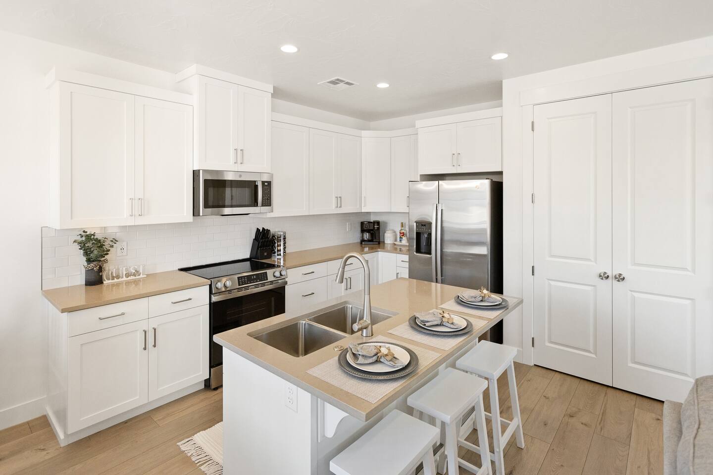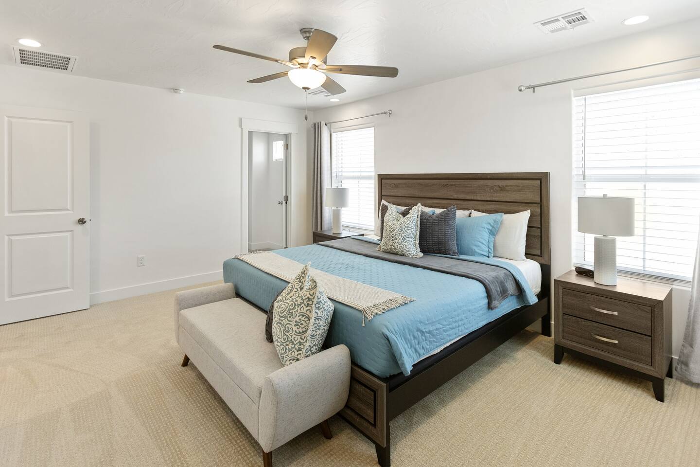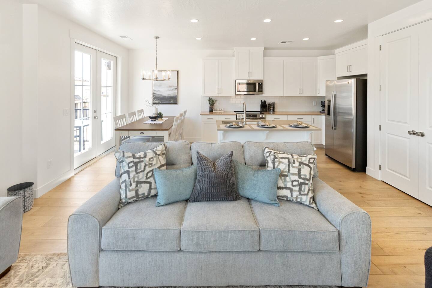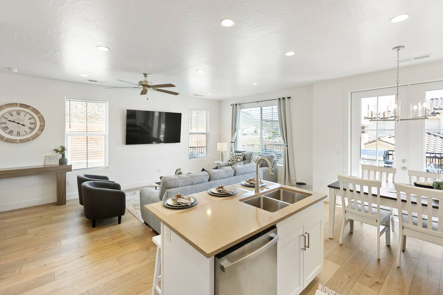 Experience the best of Southern Utah from the comfort of this BRAND NEW 2200 square foot home boasting 3 bedrooms and 3.5 bathrooms accommodating up to 10 guests. Perfectly located to National + State Parks, shopping, restaurants, golfing, pickle ball, miles of hiking and biking trails. Our home is spotless, modern with superior furnishings throughout making this the perfect home for your upcoming getaway to Southern Utah. Our goal is to exceed your vacation experience in every way and cleanliness is our top priority. To make it easy, we offer Self Check-In with keyless entry and offer personal assistance at any time. * SLEEPING ACCOMMODATIONS * Master Main Level: KING (sleeps 2) Master Upstairs: KING (sleeps 2) Bedroom 3 Upstairs : Queen x 4 (sleeps up to 8) * Also provided is a Pack N Play Crib (sleeps 1 infant) * BATHROOMS - 3 + 1/2 * Bath 1: Master Main Level Ensuite w/Walk-In Shower Bath 2: Master Upstairs Ensuite w/Walk-In Shower Bath 3: Bedroom 3 Upstairs Ensuite w/Shower+Tub Combo Bath 4: Half bath off entry on main level * FEATURES * Fast WiFi Smart Roku TVs in every room Premium Mattresses with Luxury Bedding Fully Stocked Kitchen w/New Appliances Desk for Work/School Oversized Garage w/EV charger BBQ Grill w/Propane Washer and Dryer w/Laundry Supplies * PARKING * Oversized Garage w/EV Charger Additional Spaces on side of home RV/Trailer Parking across the street * PRIVATE COMMUNITY AMENITIES * Heated Pool Open All Year (10am-10pm) Large Hot Tub (10am - 10pm) Pickle Ball Courts (6am - 10pm)