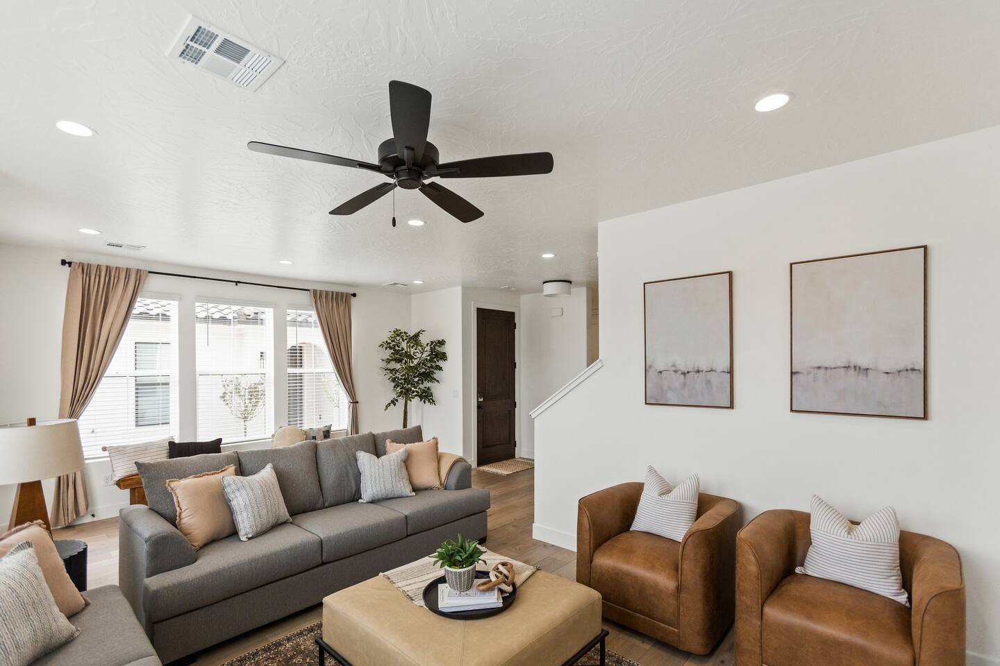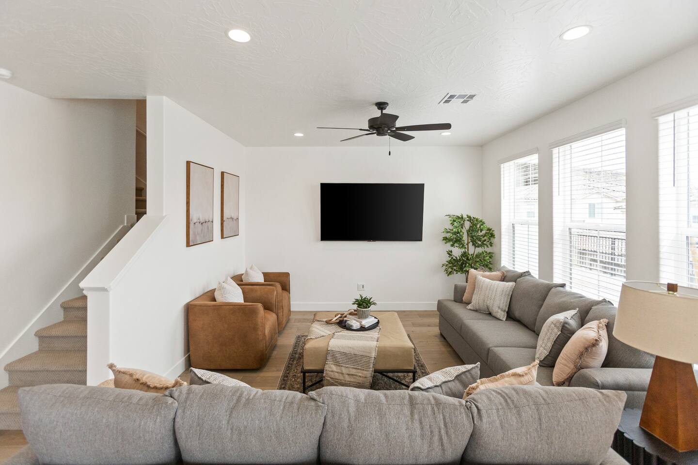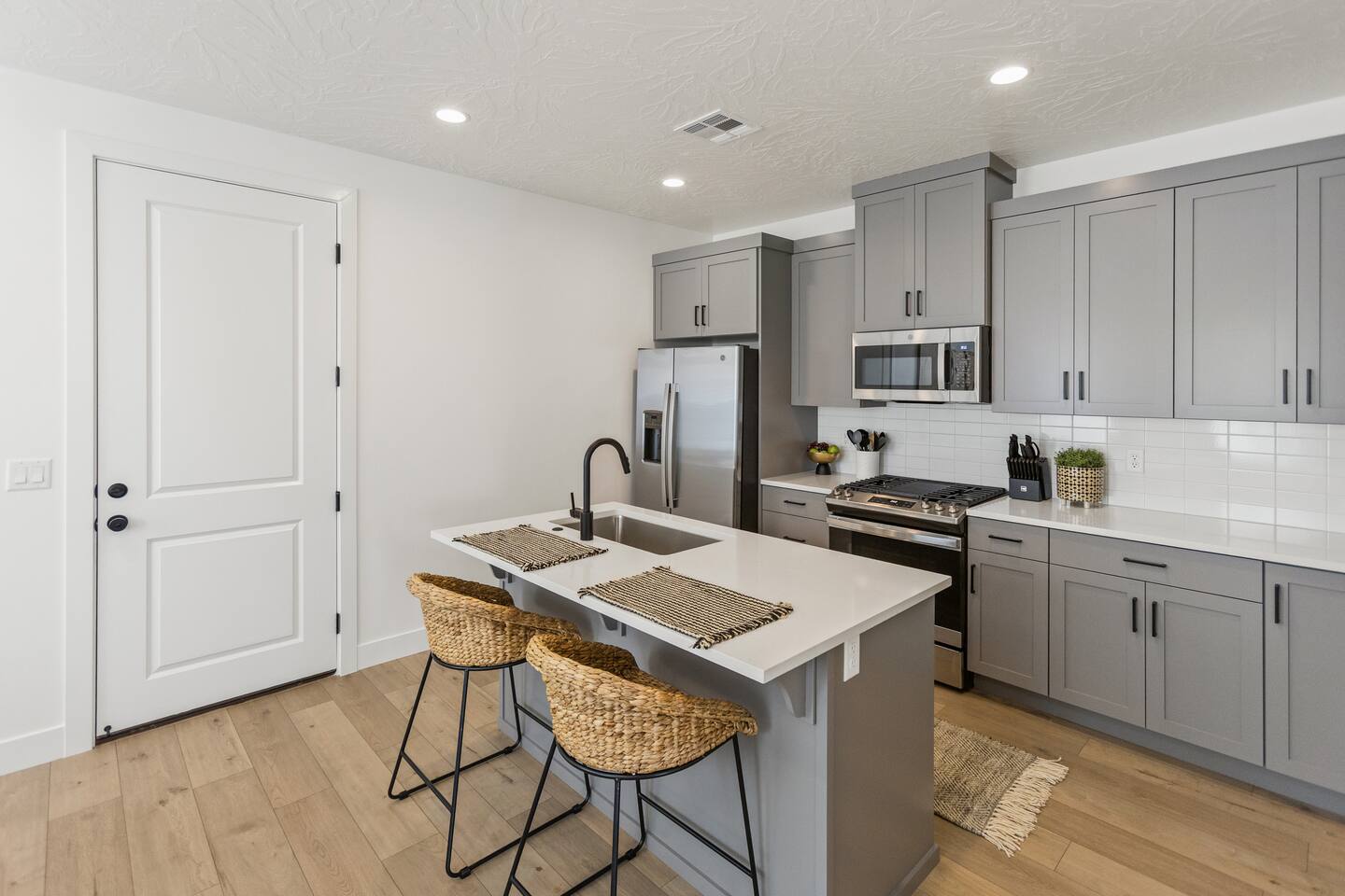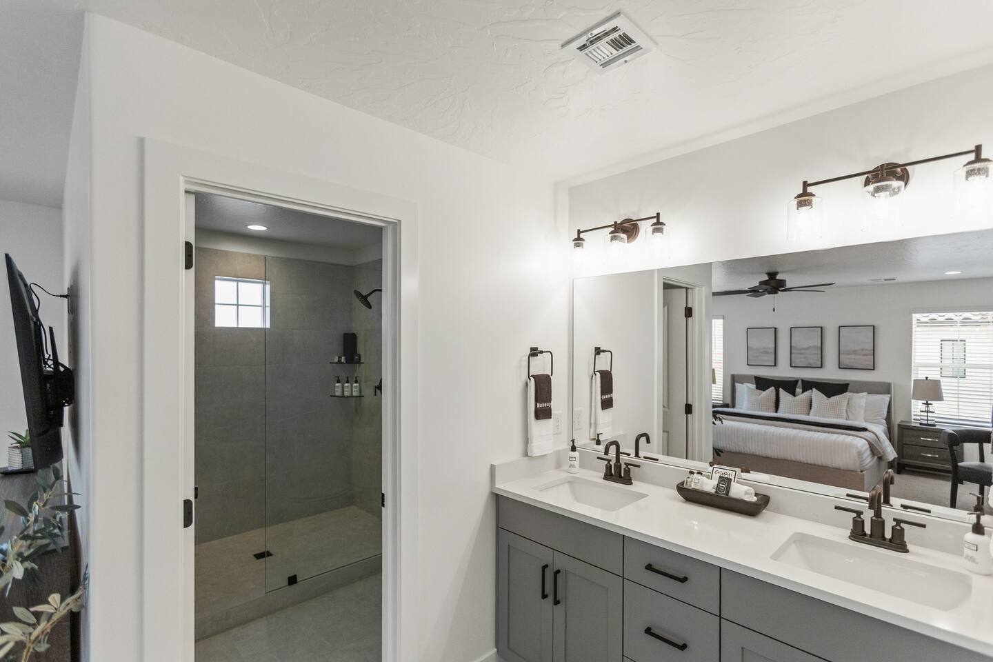 Our home is spotless, modern with superior furnishings throughout making this the perfect home for your upcoming getaway to Southern Utah. Our goal is to exceed your vacation experience in every way and cleanliness is our top priority. To make it easy, we provide you with excellent communication, keyless entry with Self Check-In and offer personal assistance at any time during your stay. We are available 24/7 so do not hesitate to reach out with any questions - We are always happy to help! * SLEEPING ACCOMMODATIONS * Master 1: King (sleeps 2) Master 2: Queen x 2 (sleeps 4) Master 3: King (sleeps 2) Bedroom 4: Queen x 2 Bunk Beds (sleeps 4) Other: Pack N Play Crib (sleeps 1 infant) * We can accommodate 1 infant in this property. If more than 1 infant, please inquire. * BATHROOMS * Bath 1: 1/2 bath off entry (main level) Bath 2: Master 1 Ensuite w/Walk-In Shower Bath 3: Master 2 Ensuite w/Walk-In Shower Bath 4: Between Master 3 and Bunk Room w/Shower & Tub Combo * FEATURES * Fast WiFi Smart Roku TVs Oversized Garage w/EV charger Premium Mattresses with Luxury Bedding Washer + Dryer w/Laundry Supplies Fully Stocked Kitchen w/New Appliances Desk for Work/School BBQ Grill w/Propane Pickle ball Courts w/Equipment Provided RV/Trailer Parking * PARKING * 2-Car Garage w/EV Charger RV/Trailer Parking throughout community Additional parking spaces available on first come - first serve basis * STOCKED KITCHEN * Coffee Maker/Keurig Blender Crockpot Griddle Dishes Glasses Coffee Cups Wine Glasses Kid Dish Set Silverware Knife Set Mixing Bowls Serving Dish and Platter Tupperware Pots & Pans Pyrex Dishes Colander Cookie Sheet Cake Pan Measuring Cups and Spoons Mixing Spoons Whisks and Spatulas Large Serving Spoons Vegetable Peeler Pizza Cutter Ice Cream Scoop Can/Wine Opener Outdoor Utensils for BBQ Grill and MORE!!!! Experience the best of Southern Utah from the comfort of this NEW 2200 square foot home boasting 4 bedrooms and 3.5 bathrooms. Perfectly located close to National + State Parks, shopping, restaurants, golfing, pickle ball, miles of hiking and biking trails. Book Today and Save with Discounted Rates!