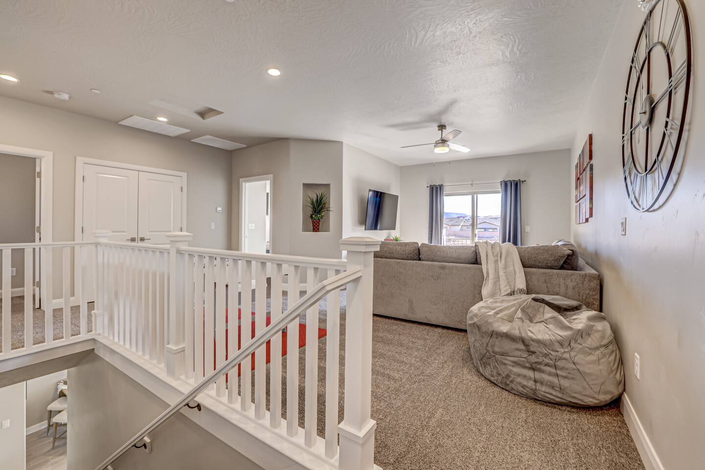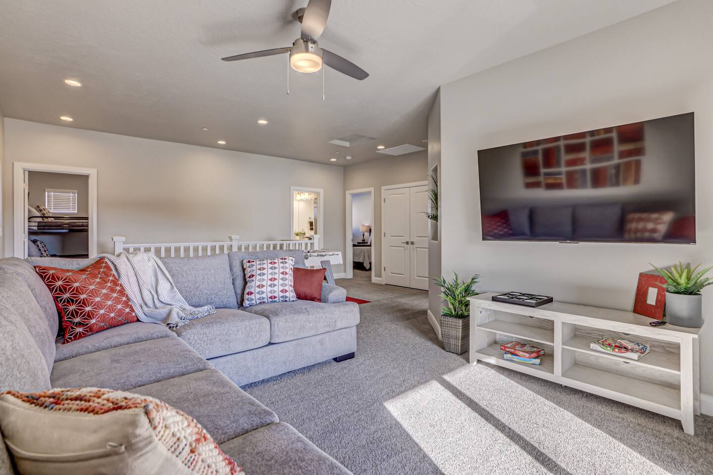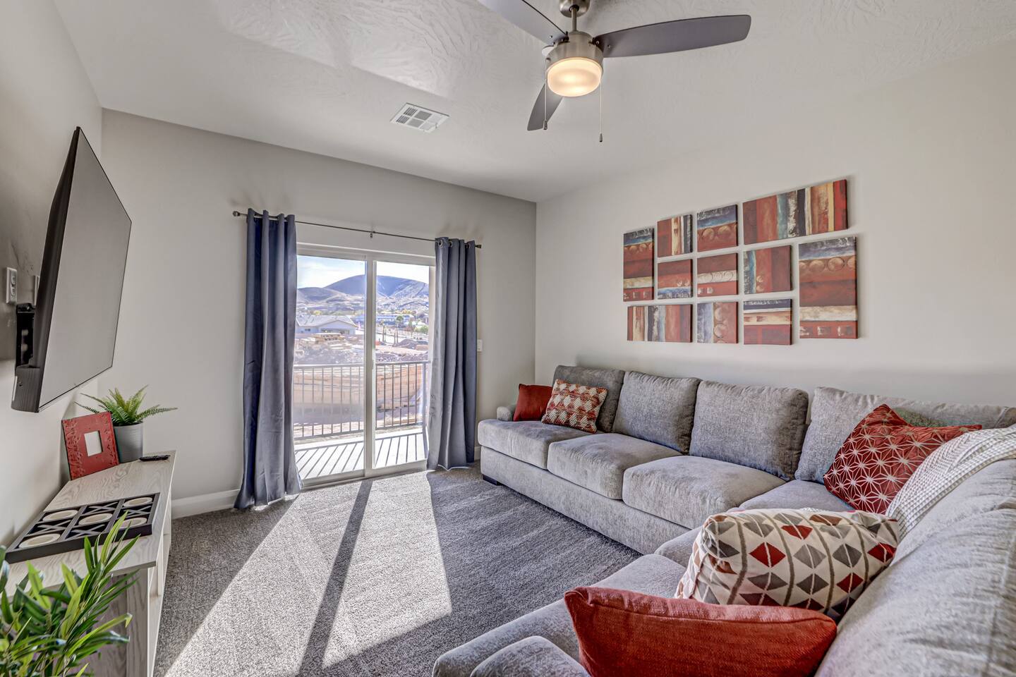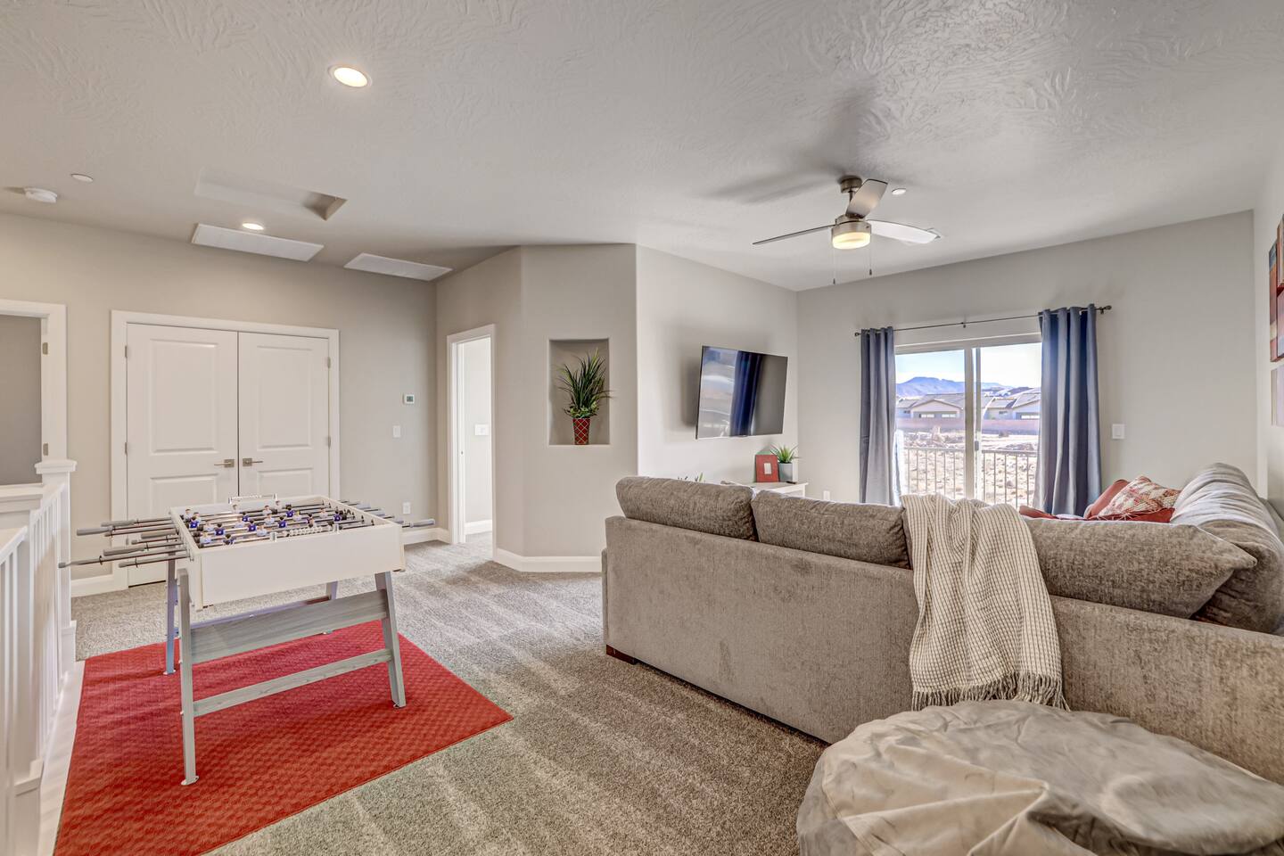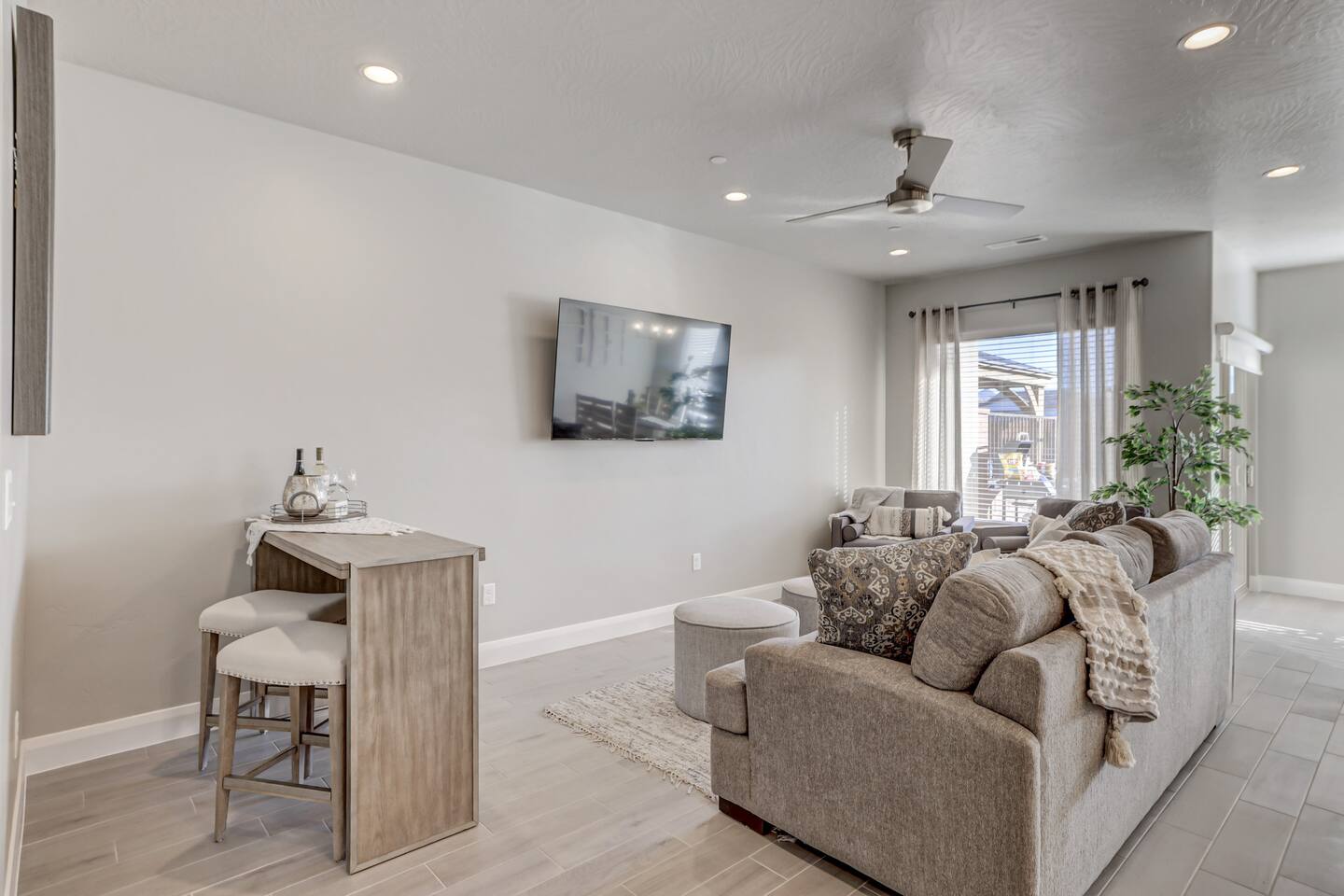 Zion Village Resort amenities are the best you will find in Southern Utah. Cool off with a dip in the resort swimming pool w/lazy river, unique lounge areas, hot tub, kid splash pad and slide *HEATED & OPEN ALL YEAR* Additional Zion Village Resort amenities include: clubhouse w/fitness center, pool table, BBQ grilling area, fire pit, basketball and pickle ball courts & more! * Although, Zion Village Resort construction is complete, there may be ongoing construction during business hours behind the home. Come and experience Zion Village Resort and you see why everyone is talking about the best resort in Southern Utah! This amazing home makes for a rejuvenating and fun retreat for multiple families, large groups, and teams.