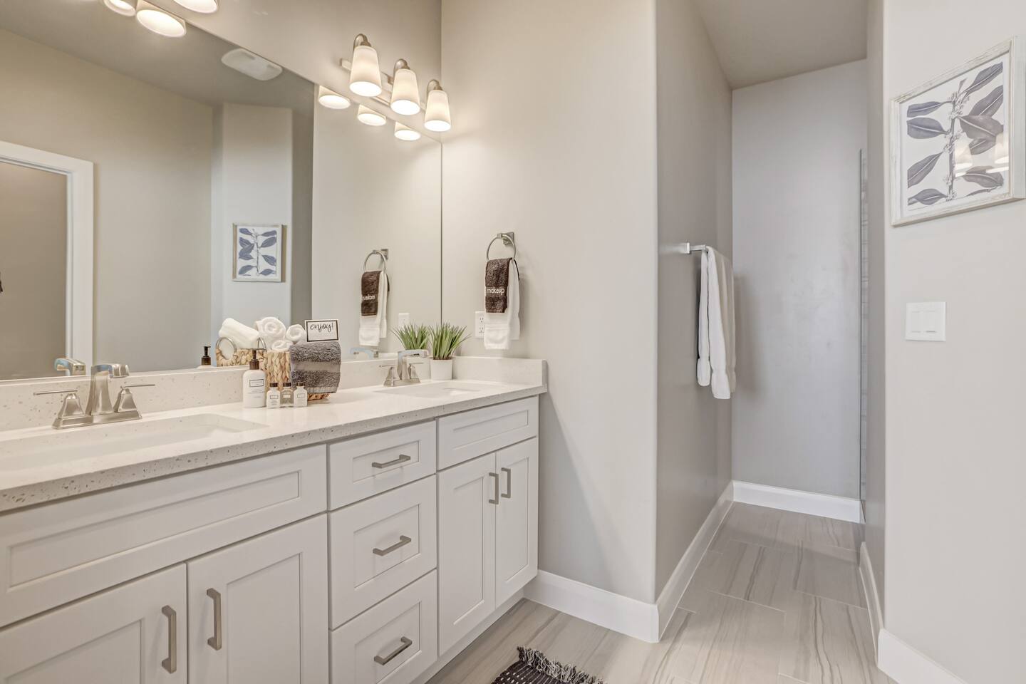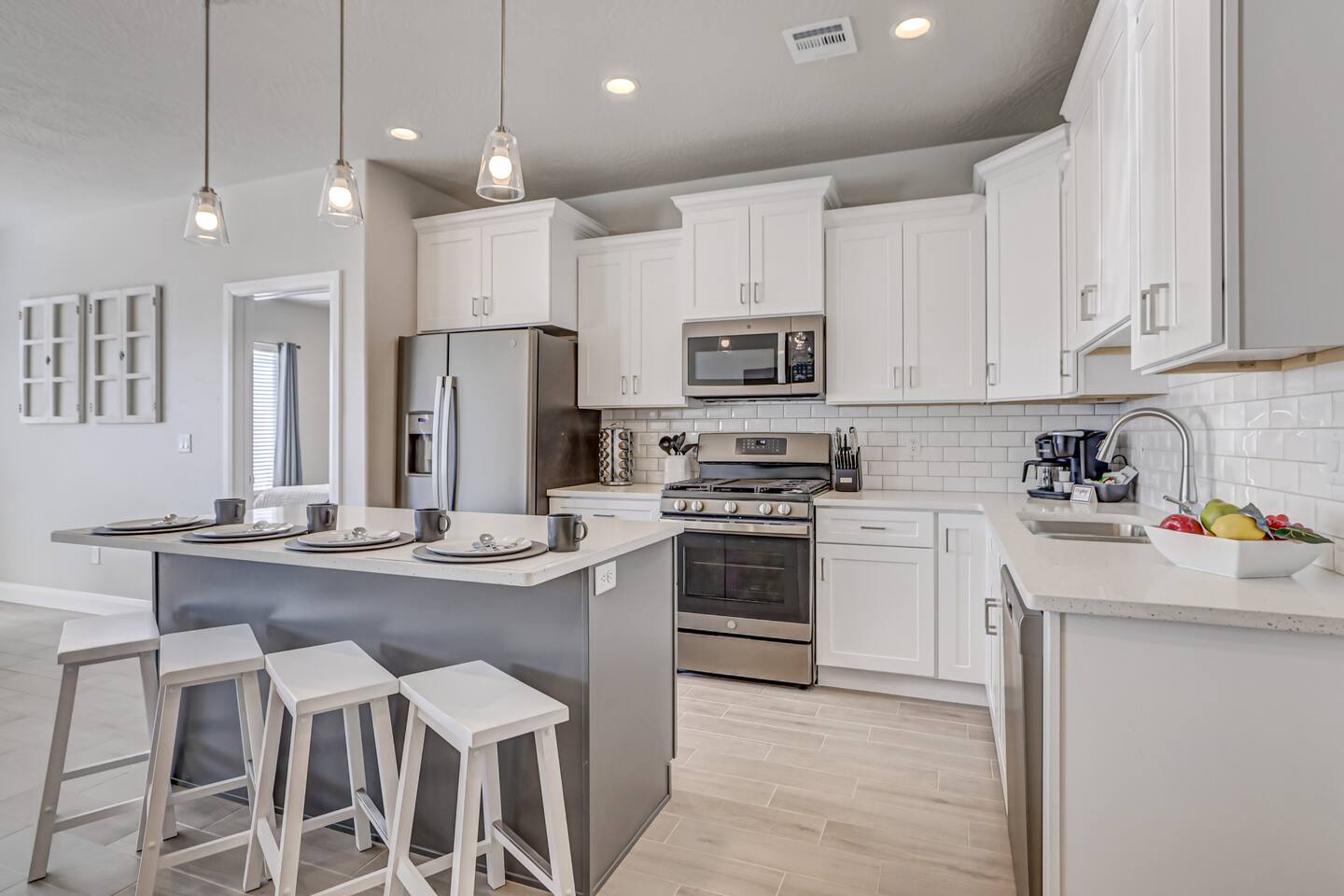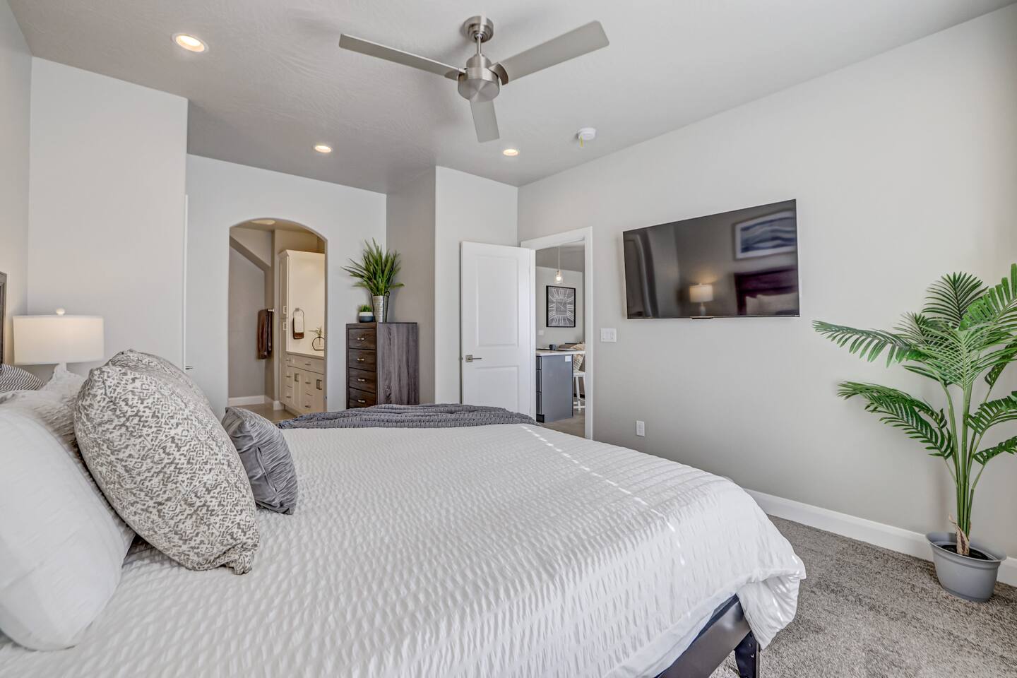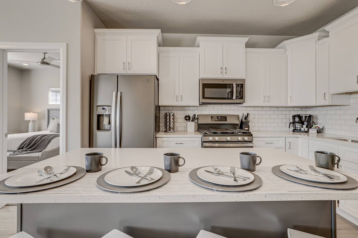 Modern meets natural beauty and desert mountain living in this new Zion Village home! The bright, well-appointed living room features plenty of seating for large groups, a flat-screen smart TV, perfect for relaxing after a day exploring Zion or Sand Hollow Parks. Fire up the gas fire pit, cook dinner on the grill on the patio, and sip a cold drink as you relax in the oversized, private hot tub under the stars. The gourmet kitchen is fully equipped, featuring granite counters and brand new stainless steel appliances to help you whip up meals with ease! Zion Village Resort amenities are the best you will find in Southern Utah. Cool off with a dip in the resort swimming pool w/lazy river, unique lounge areas, hot tub, kid splash pad and slide *HEATED & OPEN ALL YEAR* Additional Zion Village Resort amenities include: clubhouse w/fitness center, pool table, BBQ grilling area, fire pit, basketball and pickle ball courts & more! Come and experience Zion Village Resort and you see why everyone is talking about the best resort in Southern Utah! This amazing home makes for a rejuvenating and fun retreat for multiple families, large groups, and teams. This home has it all as far as things to do in the home. • Full-Size Foosball Table • Oversized, Private Hot-Tub • Fire Pit • High Speed Internet • 6 Roku Smart TVs • Work Space When it's time for bed, retreat to the master suite for a blissful night's sleep. All of our beds feature premium mattresses and various comfortable pillow options. Three bedrooms have large beds perfect for couples, flat-screen smart TVs, ceiling fans, black-out curtains and closets allows you to really settle in during your stay. Kids love the bunk room with 2 large bean bags. Bedrooms are setup with the traveling family in mind! * SLEEPING ACCOMMODATIONS * Master Suite 1: King Bed, Flat-screen Smart TV, Bench, Nightstands with Lamps, Ceiling Fan, Walkout to Private Backyard, and Closet. Ensuite Bathroom with Double Vanity, Walk-in Shower and separate Toilet Room. *MAIN LEVEL Master Suite 2: Queen Bed x 2, Flat-screen Smart TV, Desk with Chairs, Nightstands with Lamps, Ceiling Fan, Walkout to Balcony, and Large Closet. Ensuite Bathroom with Double Vanity, Walk-in Shower and separate Toilet Room. Master Suite 3: King Bed, Flat-screen Smart TV, Bench, Ceiling Fan, and Closet. Bunk Bedroom 4: Full Bunk Beds x 4 - this is the kids favorite. Also, Oversized Bean Bags x2 that convert into full mattresses. Sleeps up to 12 kids! Pack-N-Play Portable Crib, Queen Inflatable Air Mattress and additional bedding in upstairs Master Closet. * We can accommodate 1 infant in this property. If more than 1 infant, please inquire. - Sleeps up to 18 total with kids - If you have a larger group, we have several properties in Zion Village Resort and would love to help accommodate your group with one of our other properties @ Zion Village Resort. * Home is dog friendly and we do not charge a pet fee for one small dog. If you have more than 1 dog or if your dog is larger than 17 pounds - please inquire. We have made exceptions and absolutely willing to consider - pet fee may apply for larger/additional dogs. Please send us a message. We are happy to help! We know many want to know what exactly is included in a “fully stocked” kitchen. This kitchen will not disappoint. GOURMET EQUIPPED KITCHEN: Coffee Maker (Drip and Keurig) Blender Crockpot Griddle Dishes for 18+ Glasses for 18+ Coffee Cups for 12 Wine Glasses for 12 Kid Dish Set Silverware for 18+ Knife Set Mixing Bowls Serving Dishes and Platters Tupperware Pots & Pans Pyrex Dishes Colander Cookie Sheets Cake Pans Measuring Cups and Spoons Mixing Spoons Whisks and Spatulas Large Serving Spoons Vegetable Peeler Pizza Cutter Ice Cream Scoop Can/Wine Opener Outdoor Utensils for BBQ Grill and MORE!!!!