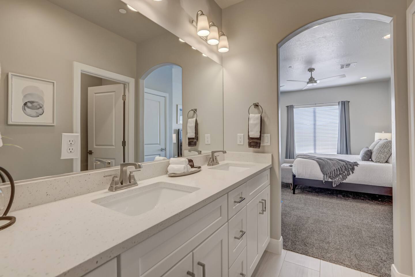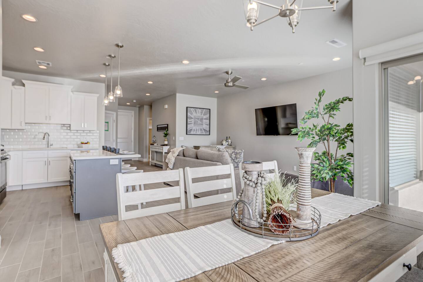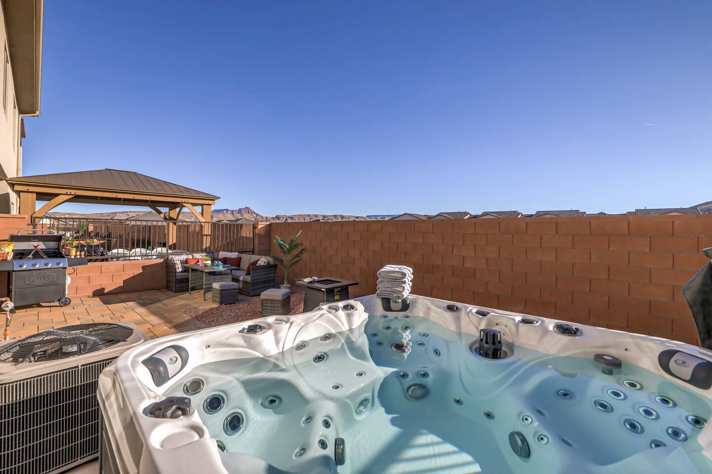 Beautiful home near Zion and Sand Hollow. You will LOVE the resort amenities as well as private fenced backyard with oversized private hot tub, fire pit, BBQ, outdoor dining makes this ideal for families or friends getting together. Dog Friendly* New Zion Village home features fully stocked gourmet kitchen, upscale and professional furnishings with nothing missed! From the moment you walk in the door you will be able to relax and enjoy all the details making this your most memorable vacation!