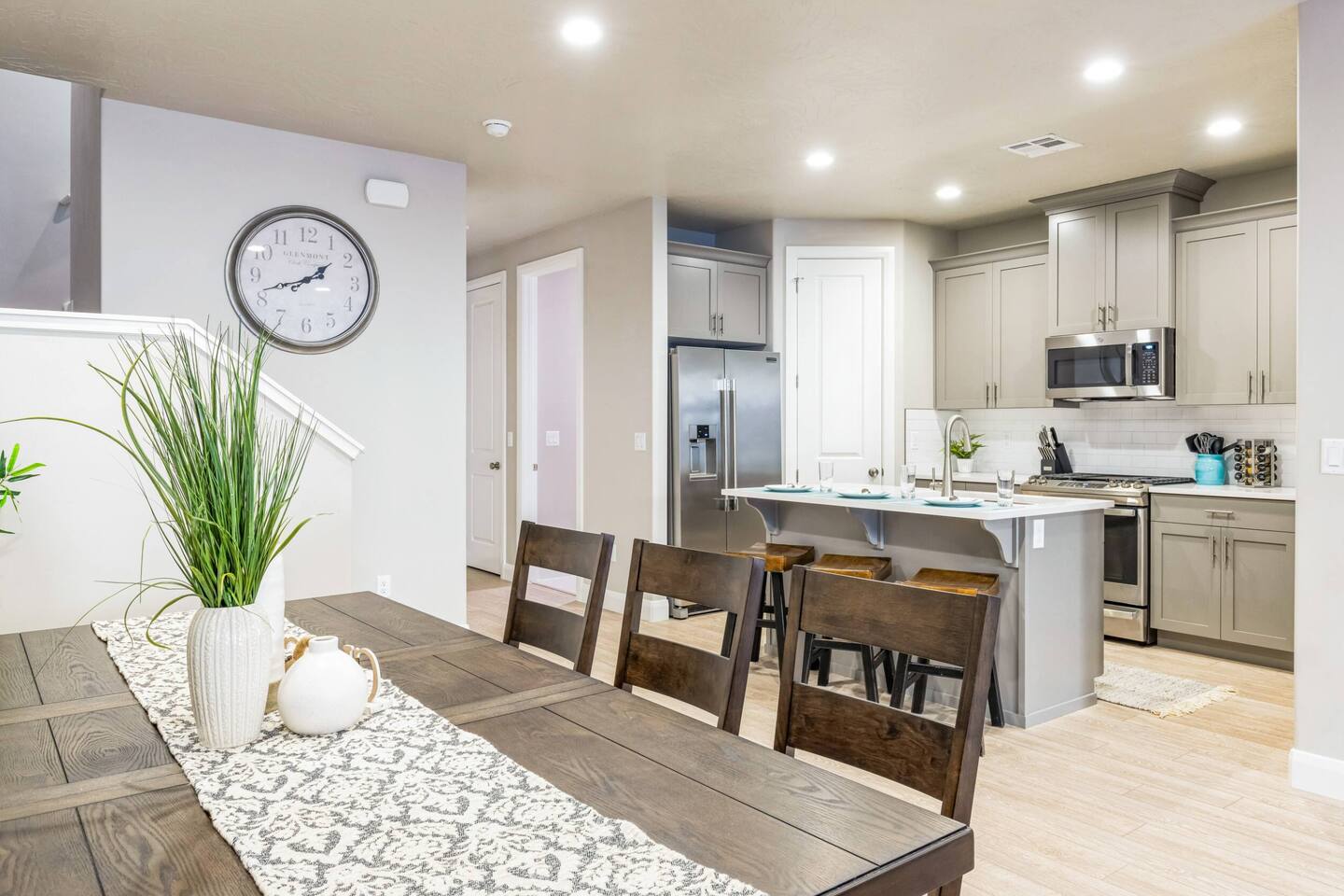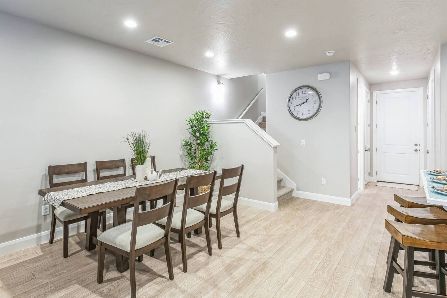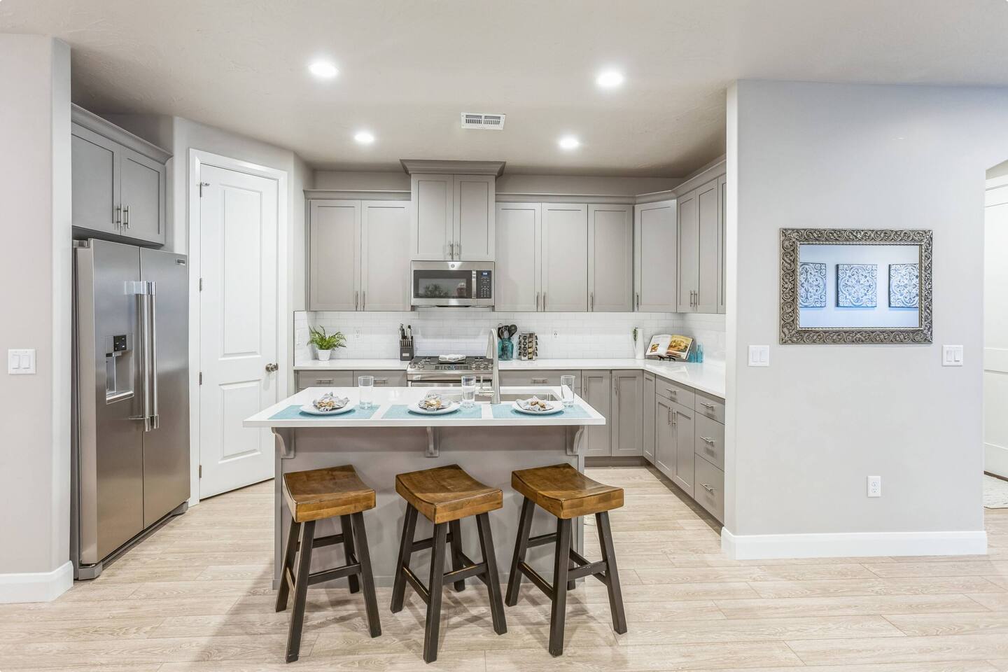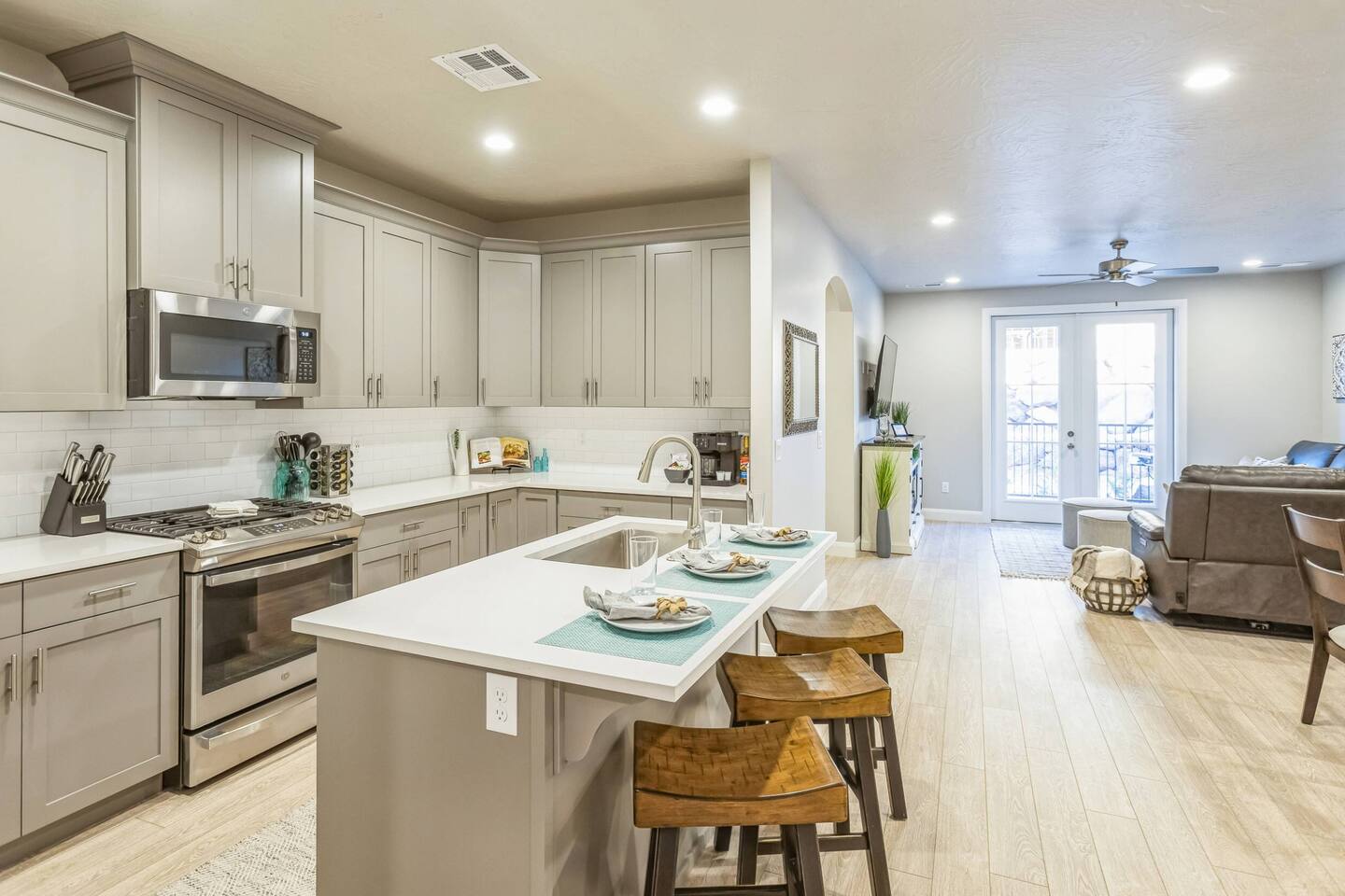 * Accommodations * • Room 1: King (sleeps 2) • Room 2: Queen (sleeps 2) • Room 3: Queen (sleeps 2) • Additional Sleeping: PackNPlay Portable Crib * We can accommodate 1 infant in this home. If more than 1 infant, please inquire. * Features * • 3 Bedrooms + 2.5 Bathrooms • Spacious Kitchen/Living Room • Dining Seating 9 inside + 6 outside patio • Open Floor Plan with plenty of windows + natural lighting • Stainless Steel Appliances + Granite Countertops • Gorgeous tile work throughout • Hard floors on main level + carpet upstairs • 4 Smart TVs • High Speed WiFi • Laundry Room w/Washer + Dryer • Private patio w/ BBQ, outdoor dining table • 2-Car Garage w/EV charger • Heated Pool opens Mid/Late August • Pickle Ball courts available Mid/Late August • Baby & Kid Friendly* • PackNPlay portable crib • Highchair • Baby gate • Baby monitor • Play kitchen • Race track + cars Need to work or kids having online school? No problem, Upgraded High Speed Internet in the home. There are several work areas with desks in the home making it easy for those needing to work a little. * Gourmet Equipped Kitchen * Coffee Maker Keurig Blender Crockpot Griddle Dishes Glasses Coffee Cups Wine Glasses Kid Dish Set Silverware Knife Set Mixing Bowls Serving Dishes and Platters Tupperware Pots & Pans Pyrex Dishes Colander Cookie Sheets Cake Pans Measuring Cups and Spoons Mixing Spoons Whisks and Spatulas Large Serving Spoons Vegetable Peeler Pizza Cutter Ice Cream Scoop Can/Wine Opener Outdoor Utensils for BBQ Grill and MORE!!!!
