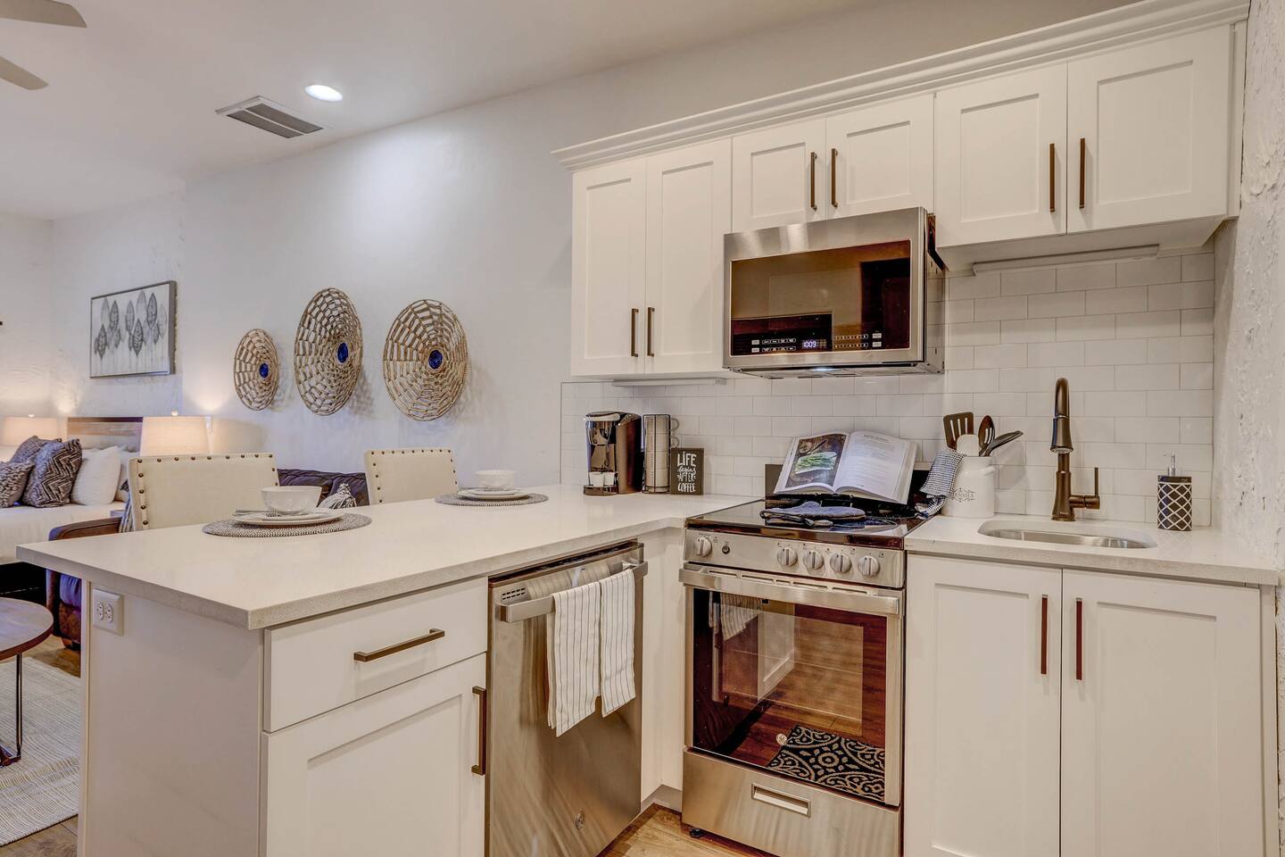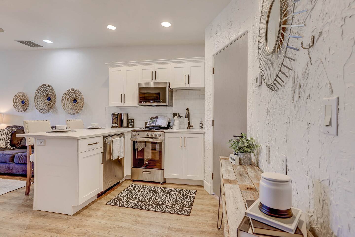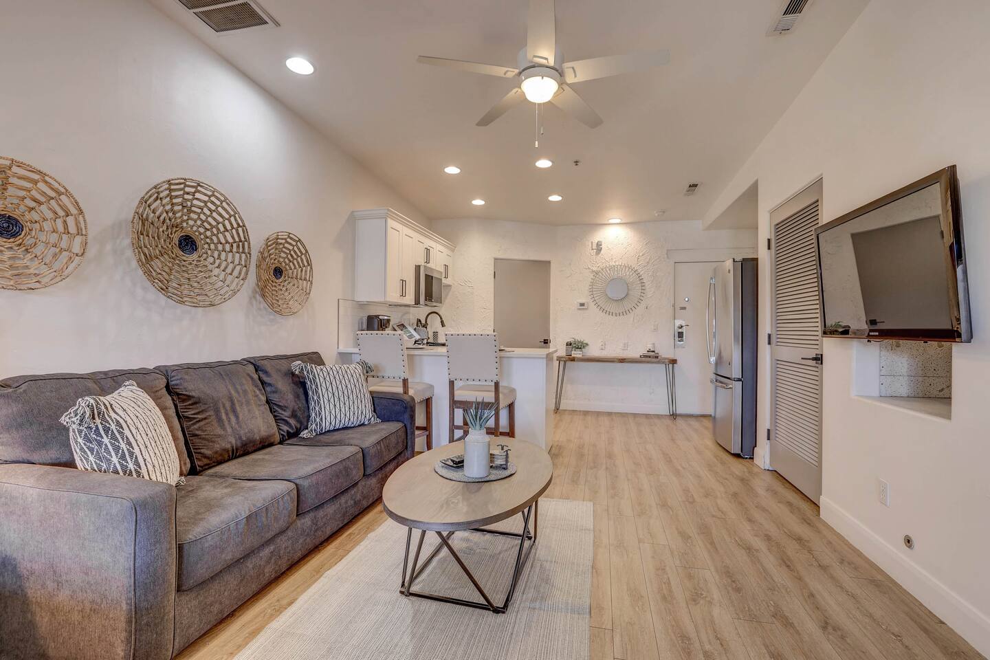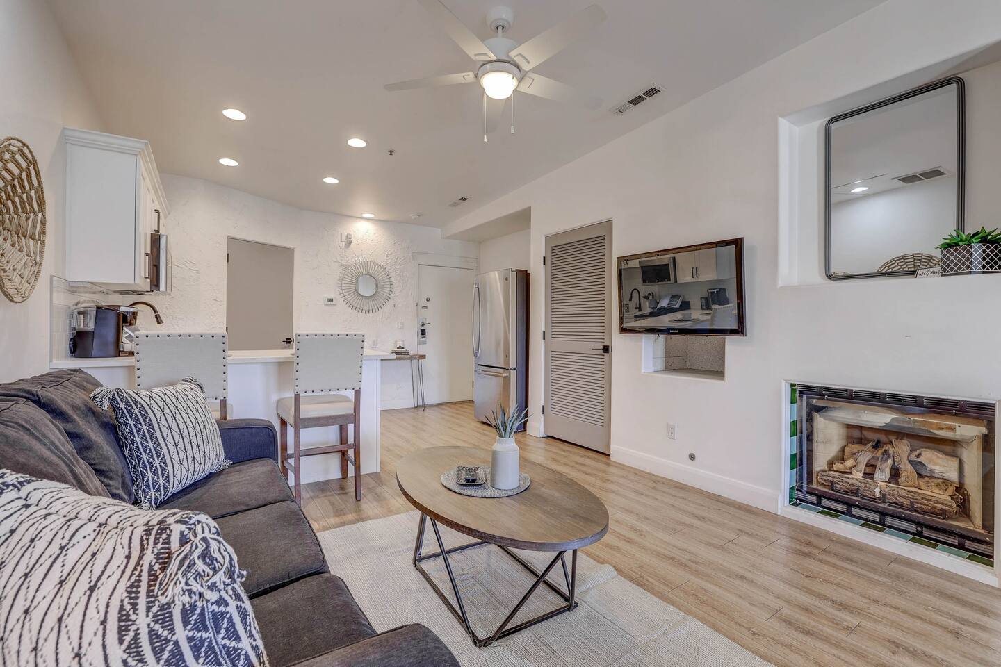 Stylish Studio Featuring --> • Dog Friendly* • Smart Roku TVs • Bathroom with Jetted Tub • Full Kitchen w/ Fridge, Oven, Microwave and Dishwasher • Fenced Patio Steps Away from Pool w/BBQ Grill Sleeping Options --> • King Bed • Queen Inflatable Air Mattress • Pack N Play Portable Crib (*We can accommodate 1 infant in this villa. If more than 1 infant, please inquire.) Also Included --> • All Towels/Bedding including Pool Towels • Toiletries and Hair Dryer • Fridge, Microwave, Oven, Dishwasher, Coffee Maker/Keurig, Dishes/Glasses/Silverware, Etc. • Fenced Patio with BBQ and Lounger • PickleBall Racquets and Balls Resort Amenities Included --> • Two Swimming Pools (Family and Adult) • Hot Tub • Pickle Ball Courts • Fitness Center w/Cardio and Weights • Laundry Room w/Laundry Supplies + Iron • Ice Machine • Spa (Services at an additional cost) --> NOTE: Pools and Hot tub will not be available Dec1-Jan31. Nightly rates have been discounted accordingly. * Villa is dog friendly and we do not charge a pet fee for one small dog. If you have more than 1 dog or if your dog is larger than 17 pounds - please inquire. We have made exceptions and absolutely willing to consider - pet fee may apply for larger/additional dogs. Please send us a message. We are happy to help!