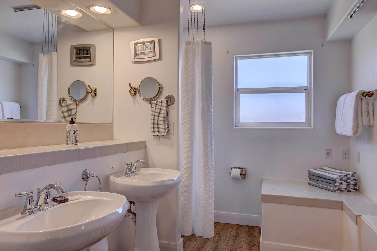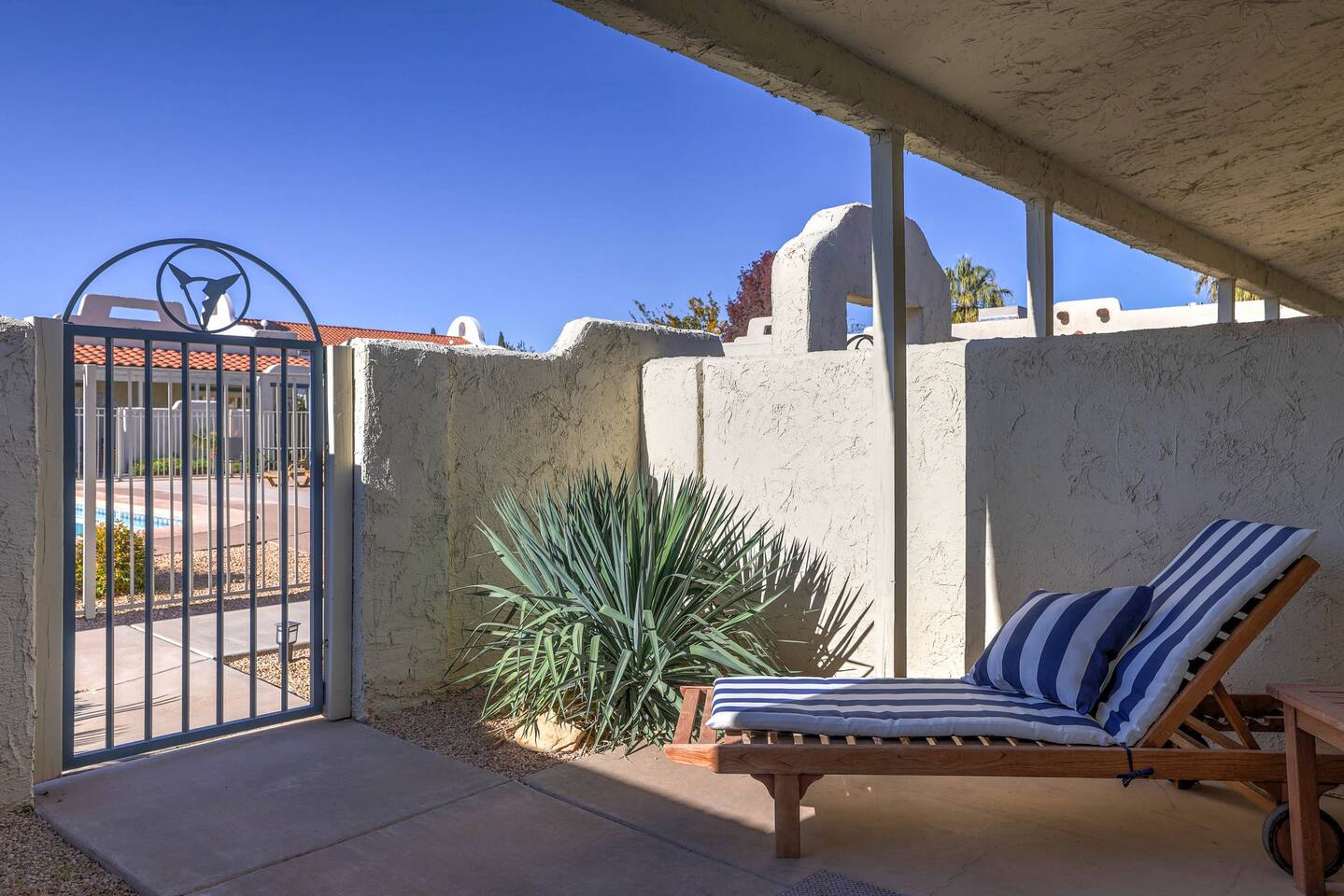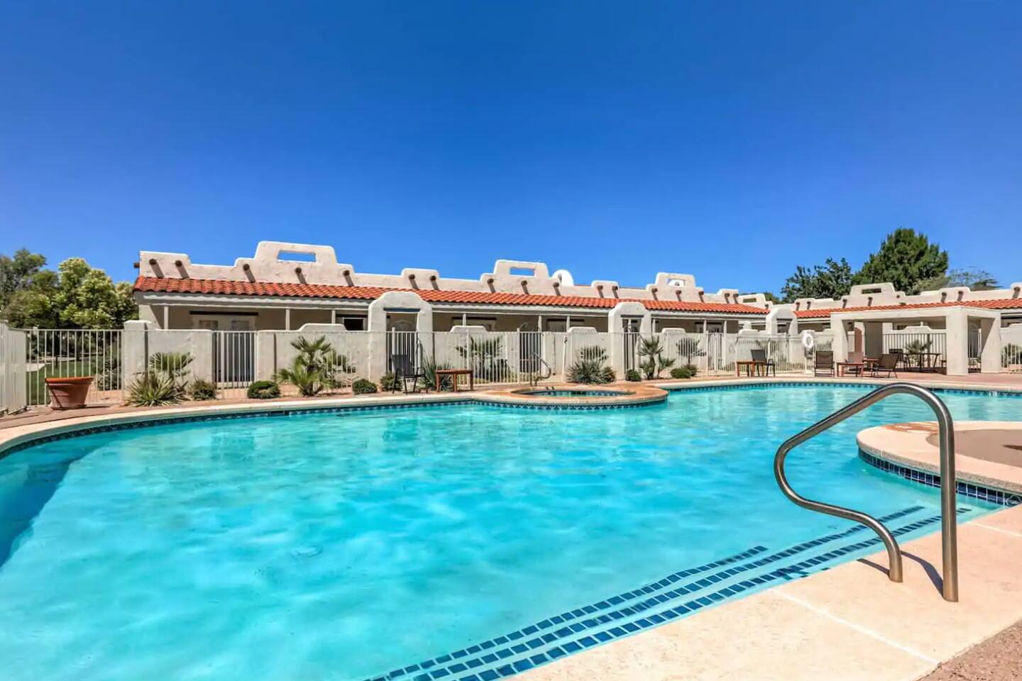 Relax at this quiet resort with heated pool and hot tub year round! This stylish villa features High-Speed WiFi, Private Entrance, King Bed, Large Dual Bathroom with Jetted Tub, Full Kitchen, Roku TVs, and Fenced Patio with BBQ Grill. Resort includes TWO Pools (Adult & Family), Hot Tub, Pickle Ball Courts, Tennis Courts, Fitness Center, Laundry Room, Ice Machine, and Spa. Best kept secret in St George with everything you would want for your getaway! Book Today at Discounted Rates!