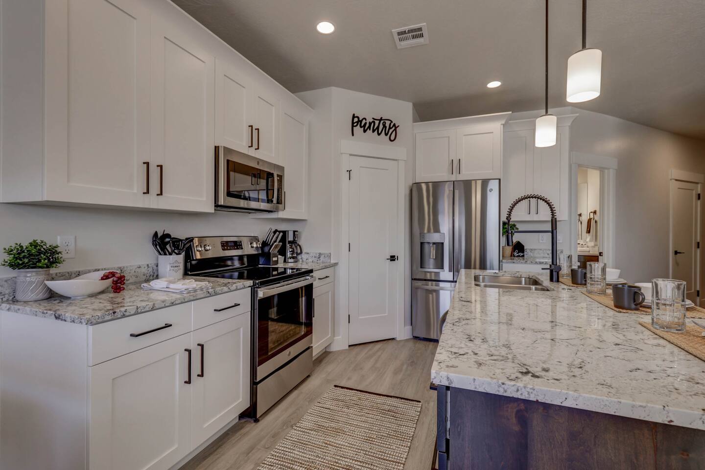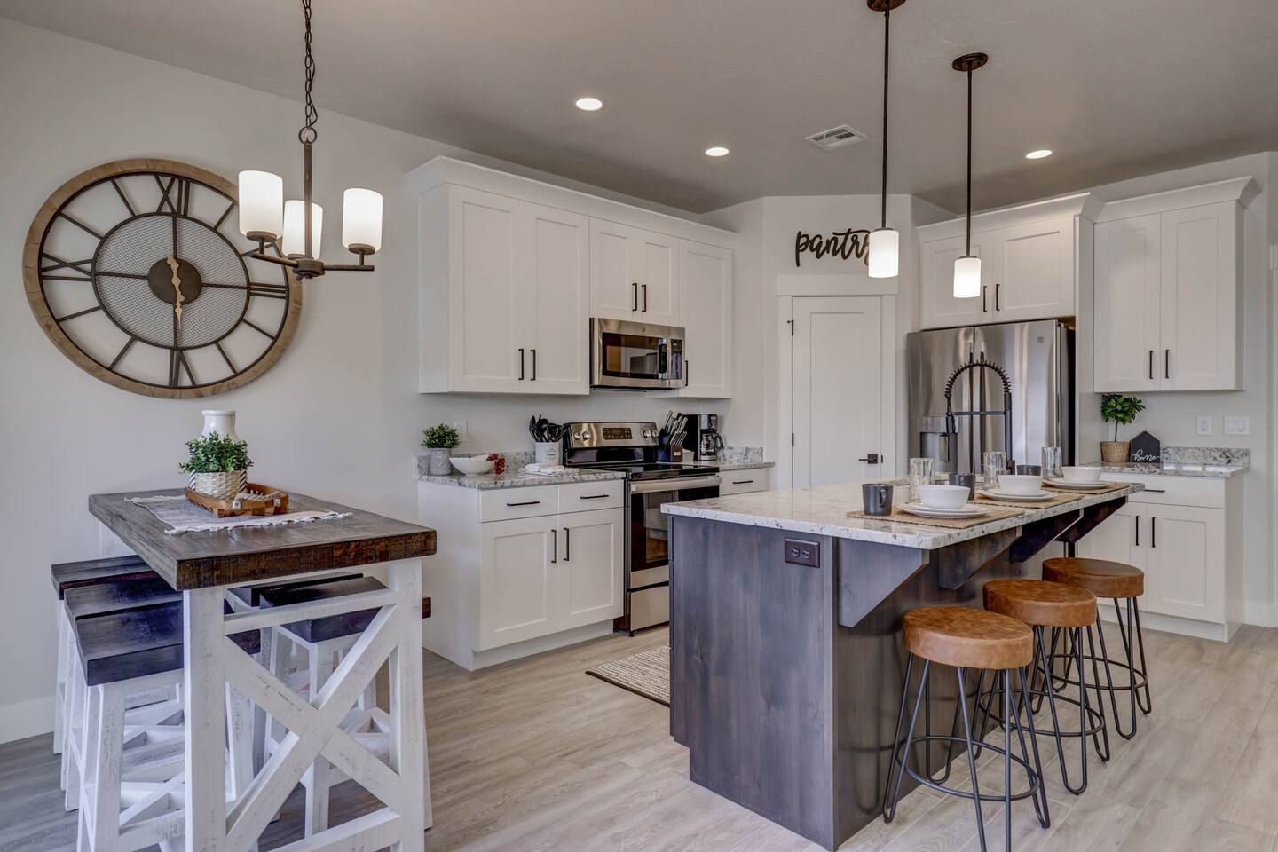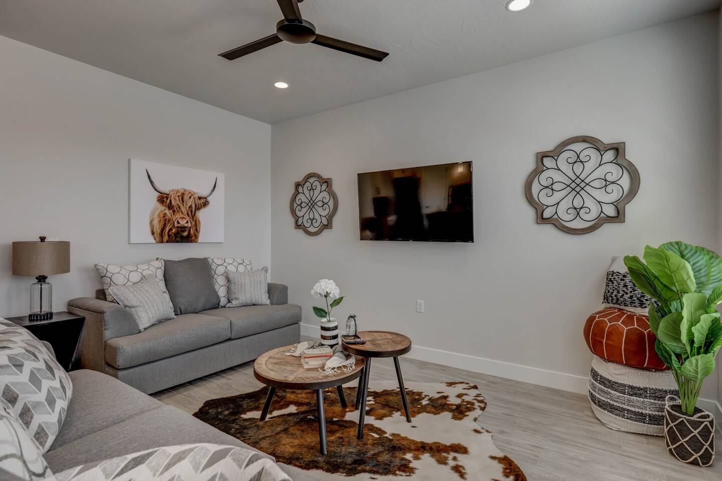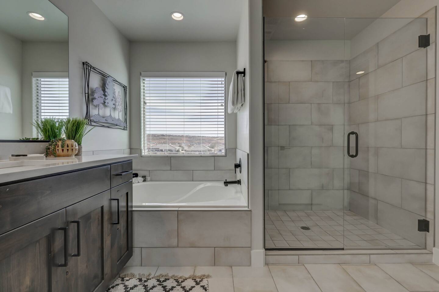 Enjoy our beautiful Southern Utah Retreat with 3 bedrooms + 3 full bathrooms and RV parking. Boasting a fenced courtyard with private hot tub, fire pit, bbq grill, outdoor dining table with additional seating makes this the perfect place. This brand new pet friendly home is professionally decorated with top of the line furnishings including a fully stocked gourmet kitchen. We have thought of every detail and you will have everything you need for an amazing and memorable stay.