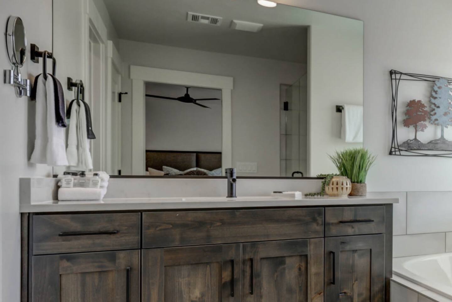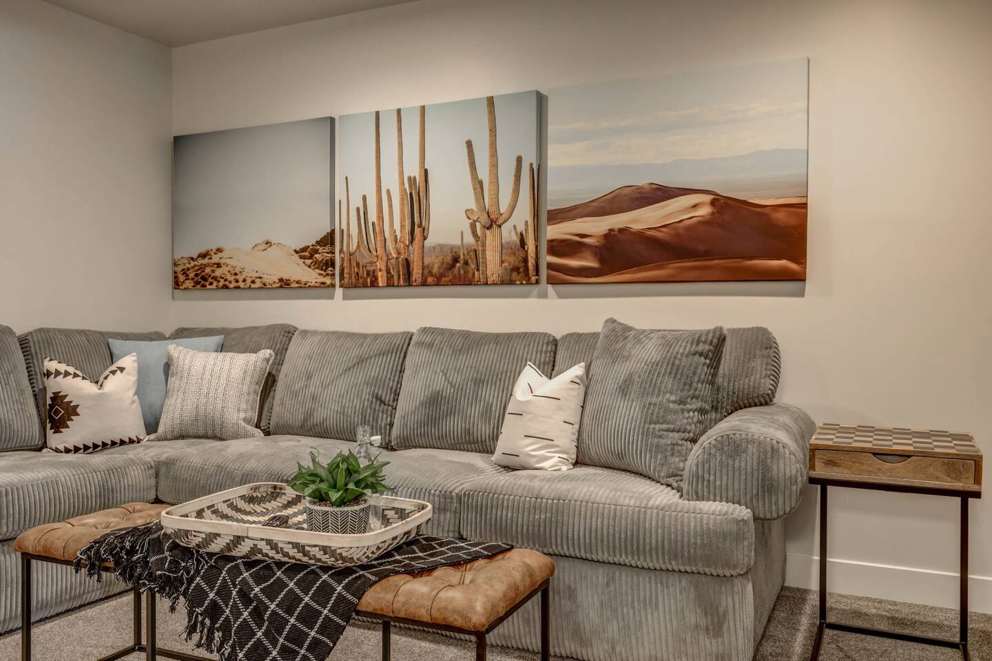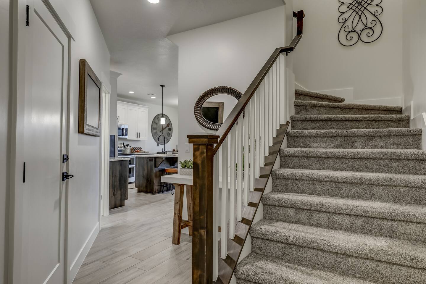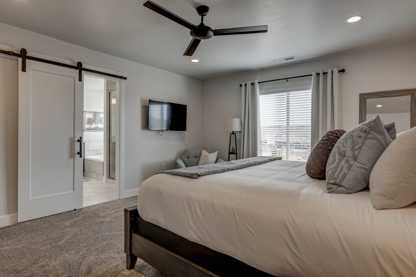 Enjoy our beautiful Southern Utah Retreat with 3 bedrooms + 3 full bathrooms and RV parking. Boasting a fenced courtyard with private hot tub, fire pit, bbq grill, outdoor dining table with additional seating makes this the perfect place. This brand new pet friendly home is professionally decorated with top of the line furnishings including a fully stocked gourmet kitchen. We have thought of every detail and you will have everything you need for an amazing and memorable stay.