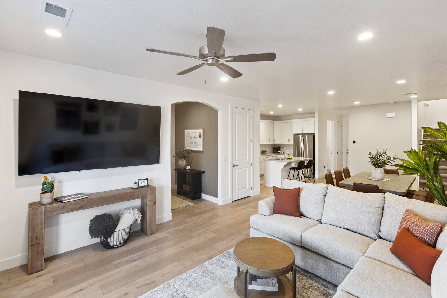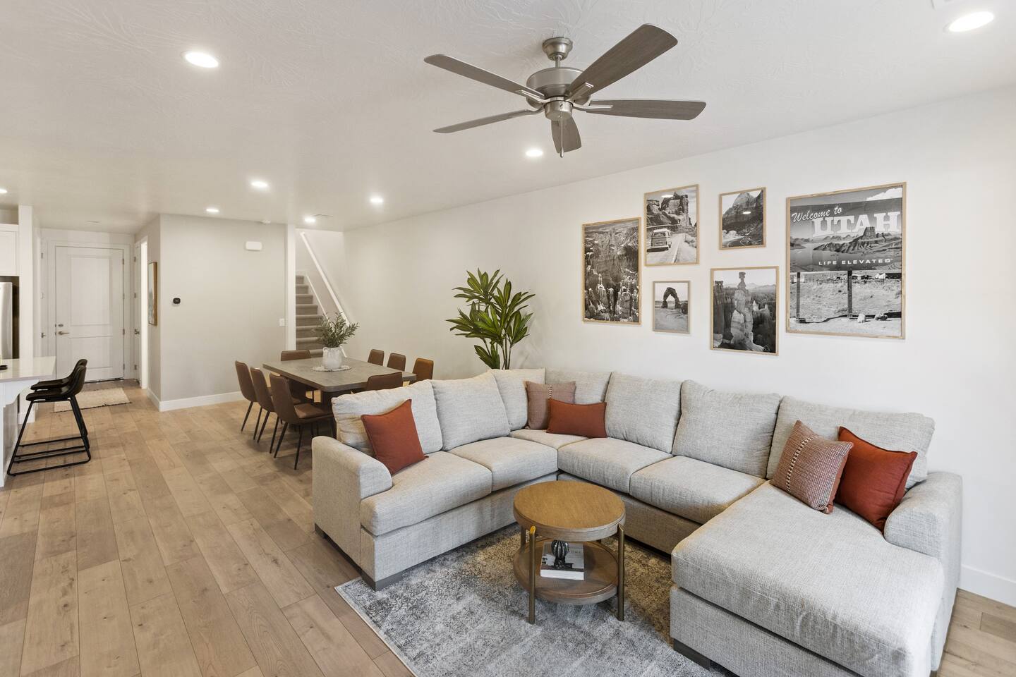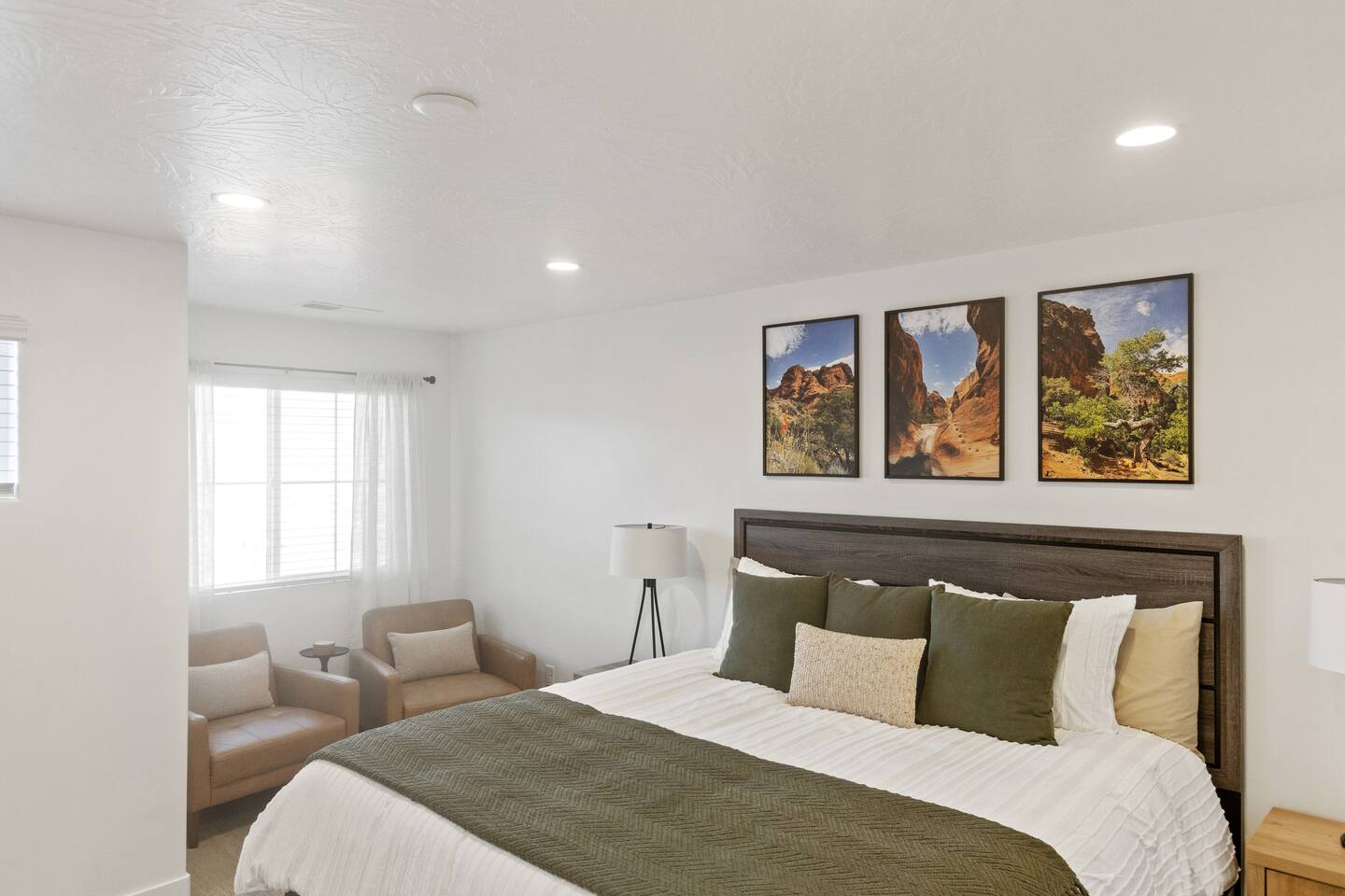 🏡 What You'll Love: ✔ Fully Equipped Kitchen – island seating, dining table, and coffee maker (keurig and drip coffee maker) ✔ Pool, Hot Tub and Pickle Ball - Heated and Open all year! ✔ 2-Car Garage – EV charger ✔ Outdoor Space – Fire up the BBQ grill on the back patio ✔ Dog Friendly - Small dog (17 pounds or less) for no additional cost. 🛏 Spacious & Cozy Sleeping Arrangements: ✔ Master EnSuite – King bed, private walk-in shower, and huge walk-in closet space (sleeps 2) ✔ Queen Room – Queen bed (sleeps 2) ✔ Bunk Room – 2 Queen beds (sleeps 4) ✔ PackNplay Additional: Queen AirMattress + additional bedding available upon request ✔ Bathrooms stocked with essentials – Shampoo, conditioner, body wash, soap, and hair dryers provided 📺 Entertainment & Connectivity: ✔ Smart TVs in every room (4 total) – All with built-in Roku for your favorite streaming apps ✔ Kid-Friendly Space – Perfect for movie nights and gaming 📍 Prime Location – Adventure Awaits! ✔ 5 minutes to downtown St. George ✔ Less than 30 miles from Zion National Park ✔ Near Quail Creek & Sand Hollow Reservoir – Ideal for boating & outdoor fun ✔ Close to many top-rated golf courses ✔ Minutes from Tuacahn Amphitheater – Enjoy concerts & live performances 🔆 Community Amenities - Now Available! 💦 Heated Community Pool + Hot Tub (10am - 10pm) 🏓 Pickle Ball Courts (6am - 10pm) Whether you're here to hike, golf, explore, or unwind this is the perfect home base for your next adventure. Book your stay today & SAVE! *Home is Dog Friendly for dogs 17 pounds or less. Dogs permitted on main level only (pet gate is provided in garage to block the stairs). Dogs are not permitted on the furniture, including beds. If you have more than 1 dog or if your dog is larger than 17 pounds - please inquire prior to finalizing your reservation. We have made exceptions and are willing to consider. Please, no cats or any other animals as owner has allergies. Any questions or have a larger/additional dog - Please send us a message. We are happy to help!