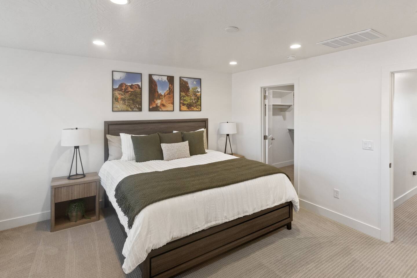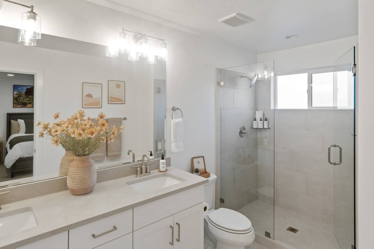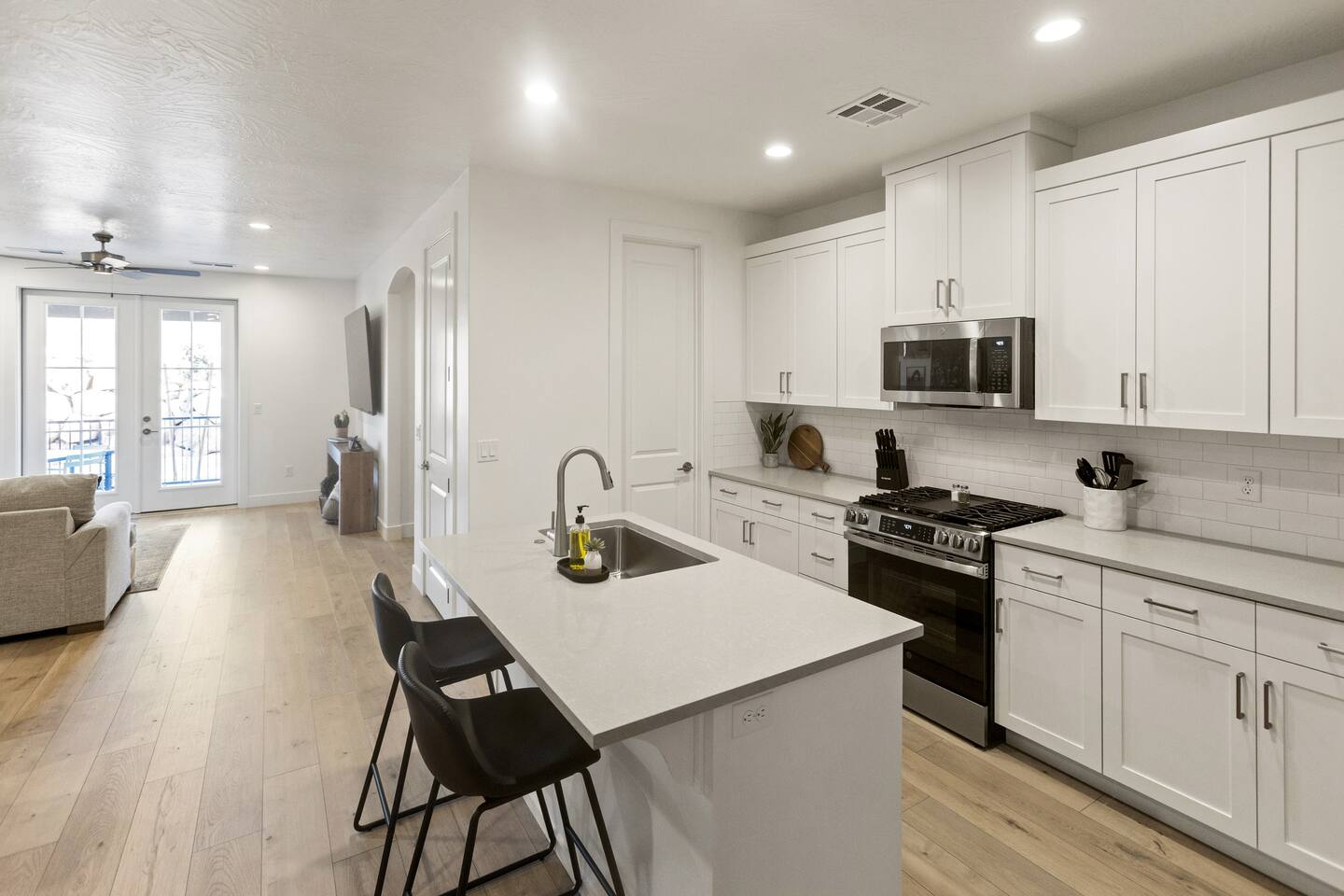 🏡 What You'll Love: ✔ Fully Equipped Kitchen – island seating, dining table, and coffee maker (keurig and drip coffee maker) ✔ Pool, Hot Tub and Pickle Ball - Heated and Open all year! ✔ 2-Car Garage – EV charger ✔ Outdoor Space – Fire up the BBQ grill on the back patio ✔ Dog Friendly - Small dog (17 pounds or less) for no additional cost. 🛏 Spacious & Cozy Sleeping Arrangements: ✔ Master EnSuite – King bed, private walk-in shower, and huge walk-in closet space (sleeps 2) ✔ Queen Room – Queen bed (sleeps 2) ✔ Bunk Room – 2 Queen beds (sleeps 4) ✔ PackNplay Additional: Queen AirMattress + additional bedding available upon request ✔ Bathrooms stocked with essentials – Shampoo, conditioner, body wash, soap, and hair dryers provided 📺 Entertainment & Connectivity: ✔ Smart TVs in every room (4 total) – All with built-in Roku for your favorite streaming apps ✔ Kid-Friendly Space – Perfect for movie nights and gaming 📍 Prime Location – Adventure Awaits! ✔ 5 minutes to downtown St. George ✔ Less than 30 miles from Zion National Park ✔ Near Quail Creek & Sand Hollow Reservoir – Ideal for boating & outdoor fun ✔ Close to many top-rated golf courses ✔ Minutes from Tuacahn Amphitheater – Enjoy concerts & live performances 🔆 Community Amenities - Now Available! 💦 Heated Community Pool + Hot Tub (10am - 10pm) 🏓 Pickle Ball Courts (6am - 10pm) Whether you're here to hike, golf, explore, or unwind this is the perfect home base for your next adventure. Book your stay today & SAVE! *Home is Dog Friendly for dogs 17 pounds or less. Dogs permitted on main level only (pet gate is provided in garage to block the stairs). Dogs are not permitted on the furniture, including beds. If you have more than 1 dog or if your dog is larger than 17 pounds - please inquire prior to finalizing your reservation. We have made exceptions and are willing to consider. Please, no cats or any other animals as owner has allergies. Any questions or have a larger/additional dog - Please send us a message. We are happy to help!